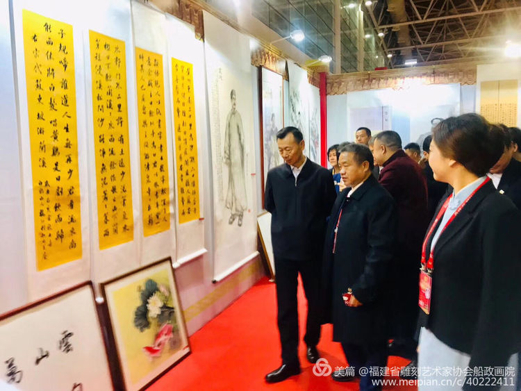 全國政協(xié)副主席、民盟中央常務副主委陳曉光、中共福建省常委、統(tǒng)戰(zhàn)部長邢善萍、全國人大常委會委員、民盟中央專職副主委張平、福建省政協(xié)副主席、福建省民盟主委阮詩瑋、民盟中央宣傳部部長曲偉、福州市委常委、統(tǒng)戰(zhàn)部部長陳曄以及全國各省、福建各地與會有關(guān)領(lǐng)導參加完在福州海峽國際會展中心舉辦的中國世界文化遺產(chǎn)(福州)高峰論壇后移步至首屆船政文化創(chuàng)作大賽獲獎作品展廳現(xiàn)場,對此次首屆船政文化書畫作品和船政精神表示高度贊賞,福建省雕刻藝術(shù)家協(xié)會船政畫院院長俞夢彥,福建省雕刻藝術(shù)家協(xié)會船政畫院執(zhí)行院長陳文漢,福建省雕刻藝術(shù)家協(xié)會船政畫院常務副院長邱清崇,福建省雕刻藝術(shù)家協(xié)會會長陳文榮以及參展藝術(shù)家、社會各界群眾300多人參加了開幕式。