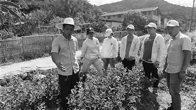 圖為永泰縣白杜村村干部向隊員介紹茉莉花種植情況