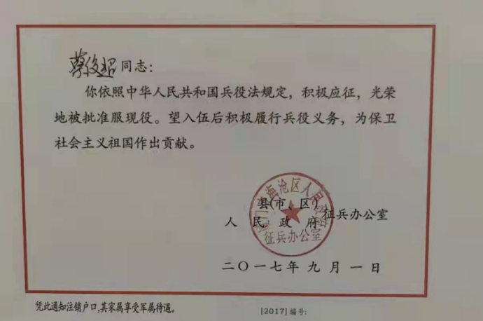 戎涯無悔,熱血青年志在軍營,祝福蔡俊超同學(xué)一切順利,實(shí)現(xiàn)“二次入伍“夢,在火熱的軍營創(chuàng)造精彩人生!