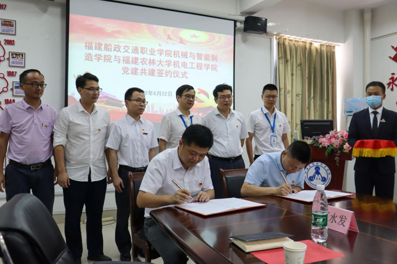 為進(jìn)一步提高基層黨組織凝聚力、戰(zhàn)斗力,不斷推動(dòng)學(xué)院的建設(shè)和發(fā)展,努力構(gòu)建“資源共享、優(yōu)勢互補(bǔ)、互相促進(jìn)、共同提高”的黨建工作新格局,2022年6月22日,福建船政交通職業(yè)學(xué)院機(jī)械與智能制造學(xué)院與福建農(nóng)林大學(xué)機(jī)電工程學(xué)院舉行黨建共建簽約儀式。