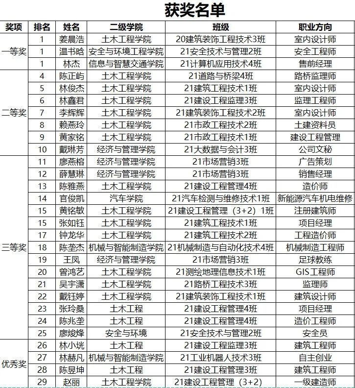 福建船政交通職業(yè)學(xué)院第九屆職業(yè)生涯規(guī)劃大賽于2022年4月開啟,全校有千余名學(xué)生參賽。經(jīng)過初賽、復(fù)賽激烈角逐,大賽專家共評(píng)議出一等獎(jiǎng)三名,二等獎(jiǎng)七名,三等獎(jiǎng)十五名,現(xiàn)予公布,如有異議,請(qǐng)于公布之日五天內(nèi)向馬克思主義學(xué)院提交書面材料申請(qǐng)。
