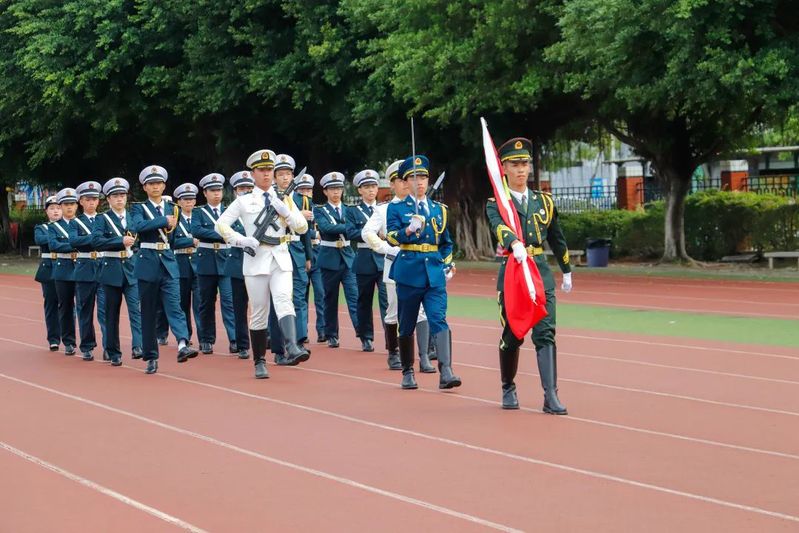 國旗護衛(wèi)隊護送國旗莊嚴地走向升旗臺