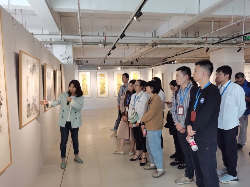 參觀完校史館,新教師們來到黨風廉政書畫作品展館,展館作品包含國畫、水彩、書法等種類,既有廉政、對聯、格言警句為內容的詩詞,又有借物詠志的山水花鳥等畫作,給新教師們帶來了一場藝術盛宴。