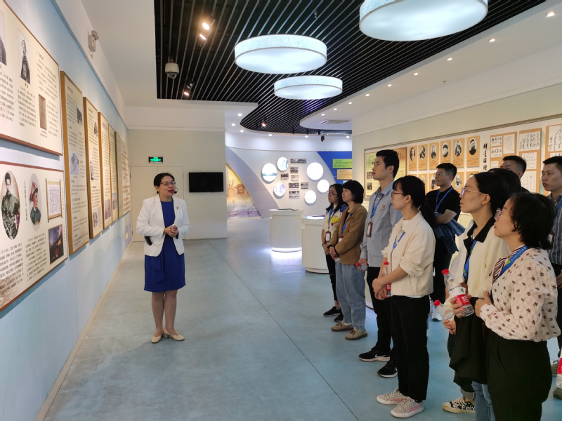 最后,老師們來到黨建思政船政文化研學中心,感受船政文化熏陶,體驗學校的文化氛圍。圖書館的老師為新教師介紹了學校圖書館的藏書情況、借閱流程以及線上查閱資料的方法,方便新教師今后更好地開展科研工作。