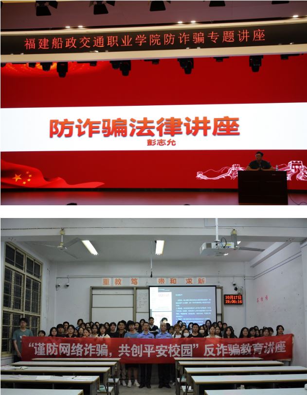 發(fā)揮課堂主渠道作用。福建船政交通職業(yè)學(xué)院重新匯編《福建船政交通職業(yè)學(xué)院法律讀本》,開(kāi)設(shè)《大學(xué)生法律基礎(chǔ)知識(shí)》等法學(xué)類(lèi)通識(shí)課程,結(jié)合社會(huì)熱點(diǎn)邀請(qǐng)司法機(jī)關(guān)工作人員線(xiàn)上開(kāi)展“憲法與法治中國(guó)”在憲法宣周專(zhuān)題講座,線(xiàn)下開(kāi)展“以案說(shuō)法”宣傳法治教育、“謹(jǐn)防網(wǎng)絡(luò)詐騙,共創(chuàng)平安校園”防詐騙教育講座、“以檢之名 護(hù)航青春”——普法講座、福建船政交通職業(yè)學(xué)院民族宗教政策法規(guī)專(zhuān)題講座、“良法善治 同心同行”憲法宣傳活動(dòng)等系列豐富多彩的專(zhuān)題活動(dòng),每周三定期開(kāi)展線(xiàn)上線(xiàn)下公益法律咨詢(xún)解答活動(dòng)及“繃緊法律弦,走好人生路”遠(yuǎn)離走私犯罪小課堂。