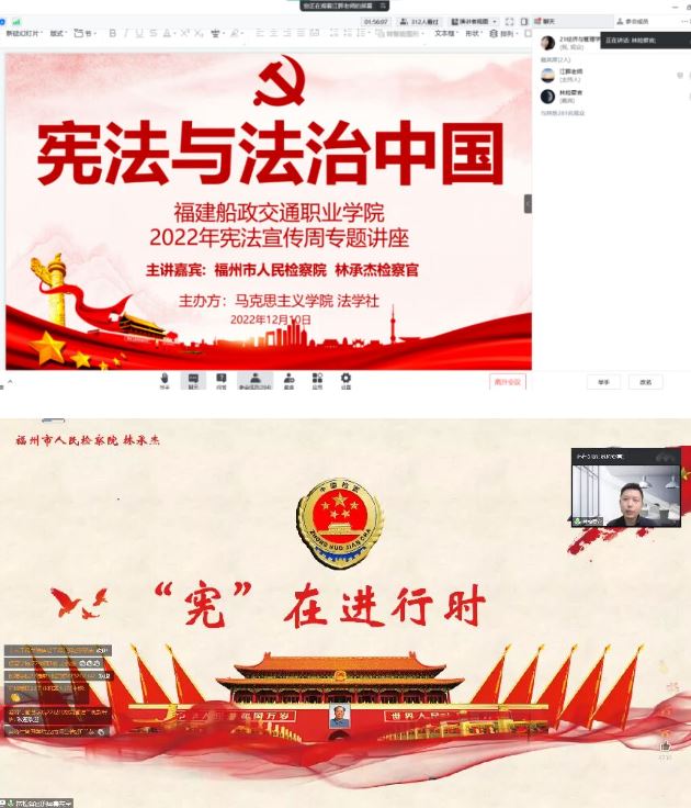 2022年12月4日是第九個(gè)國(guó)家憲法日,也是現(xiàn)行憲法公布施行40周年。福建船政交通職業(yè)學(xué)院圍繞“學(xué)習(xí)宣傳貫徹黨的二十大精神,自覺(jué)維護(hù)憲法權(quán)威”活動(dòng)主題,通過(guò)組織師生憲法朗誦、舉辦“學(xué)憲法 講憲法”主題演講比賽等方式推動(dòng)憲法教育與學(xué)校教育教學(xué)相結(jié)合,豐富校園法治文化生活,通過(guò)建立學(xué)院領(lǐng)導(dǎo)及師生學(xué)法用法制度、建立校內(nèi)爭(zhēng)議解決機(jī)制、建設(shè)法治教育平臺(tái)等措施,努力打造具有特色的普法品牌。