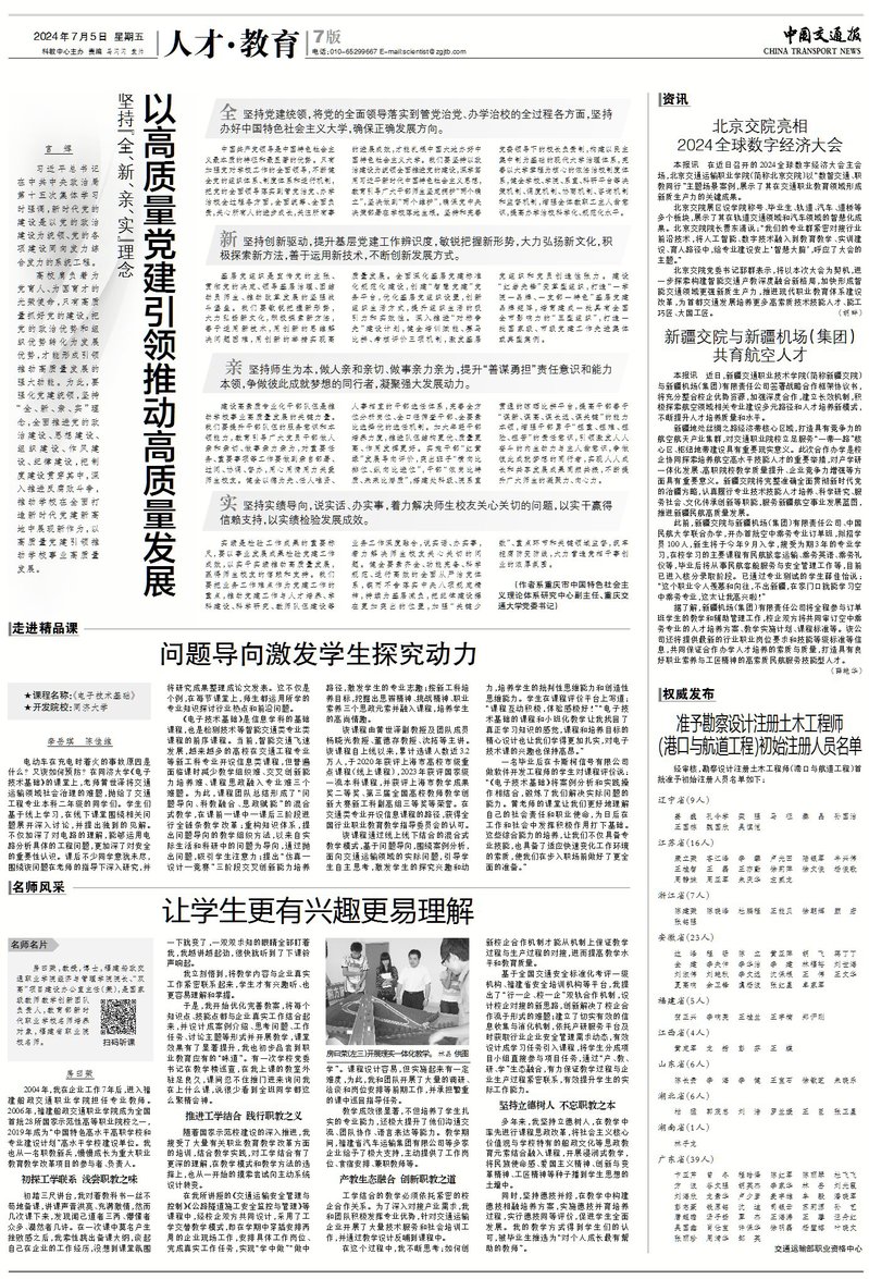 發(fā)布者:發(fā)布時(shí)間:2024-07-06瀏覽次數(shù):83 7月5日,《中國(guó)交通報(bào)》名師風(fēng)采專(zhuān)欄刊發(fā)《讓學(xué)生更有興趣更易理解》文章,對(duì)我院房曰榮教授的事跡進(jìn)行宣傳報(bào)道。