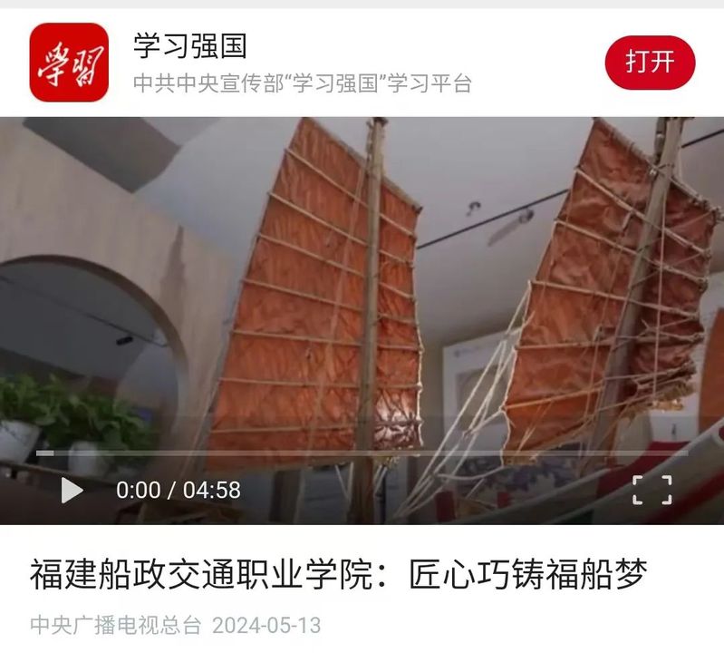 日前,中央廣播電視臺(tái)學(xué)習(xí)強(qiáng)國平臺(tái)推送我院非物質(zhì)文化遺產(chǎn)福船紀(jì)錄片《匠心巧鑄福船夢(mèng)》,對(duì)我院水密隔艙福船制造技藝的傳承與發(fā)揚(yáng),精益求精、密益求密的工匠精神進(jìn)行宣傳。