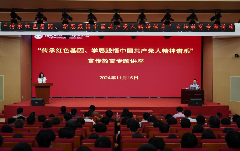 為深入實(shí)施時(shí)代新人鑄魂工程,運(yùn)用好傳承好紅色基因,推動(dòng)黨史學(xué)習(xí)教育常態(tài)化長效化,教育引導(dǎo)廣大學(xué)生增強(qiáng)踐行“兩個(gè)維護(hù)”的高度自覺、堅(jiān)定愛國奮斗挺膺擔(dān)當(dāng),11月15日,學(xué)院在福船園藝新樓331學(xué)術(shù)報(bào)告廳舉辦了“傳承紅色基因、中國共產(chǎn)黨人精神譜系”宣傳教育專題講座。機(jī)關(guān)黨總支、馬克思主義學(xué)院教職工代表,各二級學(xué)院學(xué)生代表共兩百余人參加了講座。