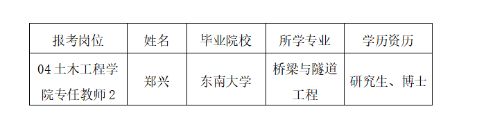 按照《關(guān)于印發(fā)<福建省省屬事業(yè)單位公開(kāi)招聘工作人員考試暫行辦法>的通知》(閩人發(fā)〔2006〕11號(hào))和《2024年福建船政交通職業(yè)學(xué)院專項(xiàng)公開(kāi)招聘總量控制高層次人才方案(二)》等文件要求,經(jīng)報(bào)名、資格審查、面試、考察、體檢等有關(guān)程序,經(jīng)學(xué)校黨委會(huì)議研究,確定鄭興為04土木工程學(xué)院專任教師2擬聘用人員,現(xiàn)予以公示。