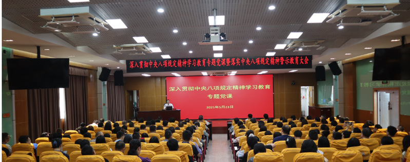 為從嚴從實推進深入貫徹中央八項規(guī)定精神學習教育,持之以恒糾“四風”樹新風,近日,學院召開深入貫徹中央八項規(guī)定精神學習教育警示教育大會。學院黨委委員、紀委書記謝建山為副科級以上及重點領域干部140余人作了題為“始終堅守紀律底線 持續(xù)筑牢廉潔防線”的講座。
