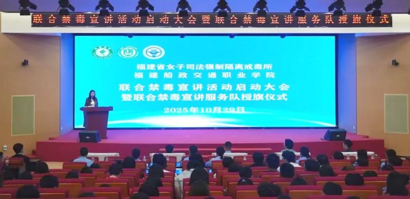 近日,我院與福建省女子司法強制隔離戒毒所聯(lián)合舉辦了禁毒宣講活動啟動大會暨聯(lián)合禁毒宣講服務(wù)隊授旗儀式。福建省司法廳戒毒管理局黨委委員、副局長李佐云,學(xué)院黨委副書記張輝,福建省女子司法強制隔離戒毒所副所長肖宏林,林則徐基金會秘書長林燕頤以及戒毒所民警、各二級學(xué)院黨總支書記、學(xué)生代表近三百人參加活動。