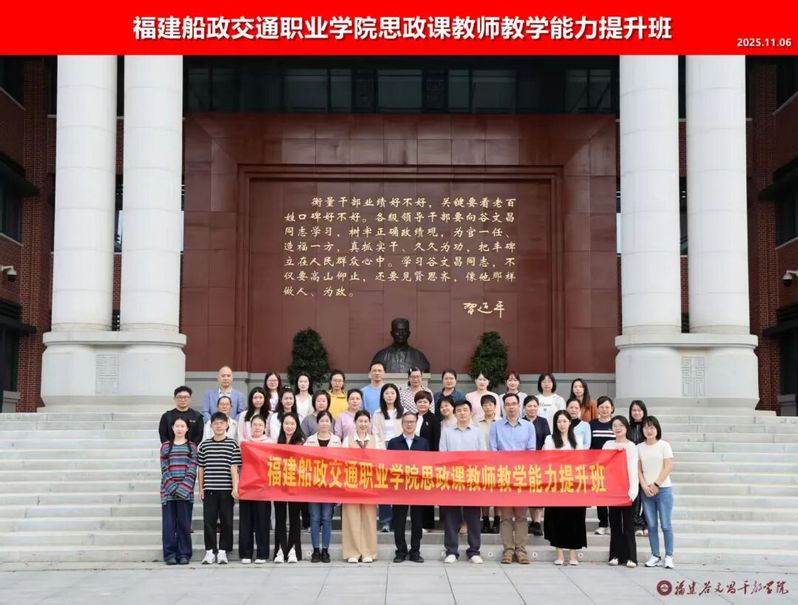為深入學(xué)習(xí)貫徹黨的二十屆四中全會精神,深化思政課教學(xué)改革,提升教師思想政治素養(yǎng)與教學(xué)實踐能力,2025年11月5日至8日,學(xué)院思政課教師教學(xué)能力提升專題研修班在福建谷文昌干部學(xué)院成功舉辦,學(xué)院黨委書記陳宜大、黨委副書記張輝出席此次研修班,宣傳統(tǒng)戰(zhàn)部、馬克思主義學(xué)院負責(zé)人及馬克思主義學(xué)院全體教師一同參加培訓(xùn)。
