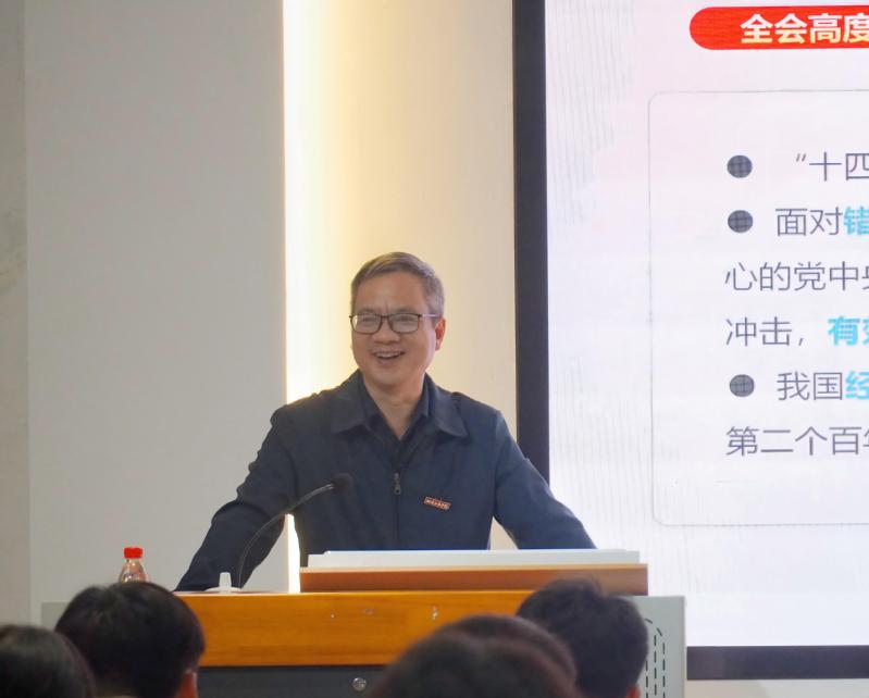 報(bào)告會(huì)上,陳宜大緊緊圍繞學(xué)習(xí)貫徹習(xí)近平總書(shū)記在黨的二十屆四中全會(huì)上的重要講話(huà)精神和全會(huì)《建議》,從全會(huì)的基本情況和《建議》起草過(guò)程,“十五五”時(shí)期在基本實(shí)現(xiàn)社會(huì)主義現(xiàn)代化進(jìn)程中的重要地位,“十五五”時(shí)期經(jīng)濟(jì)社會(huì)發(fā)展的指導(dǎo)方針、主要目標(biāo)、戰(zhàn)略任務(wù)、重要舉措,堅(jiān)持和加強(qiáng)黨的全面領(lǐng)導(dǎo)等方面,并緊密結(jié)合福建省、職業(yè)教育和學(xué)院的發(fā)展實(shí)際,對(duì)黨的二十屆四中全會(huì)精神進(jìn)行了全面系統(tǒng)、深入透徹的宣講解讀。他勉勵(lì)廣大師生,要深刻領(lǐng)會(huì)全會(huì)精神的實(shí)質(zhì)與核心要義,找準(zhǔn)個(gè)人在國(guó)家發(fā)展大局、區(qū)域經(jīng)濟(jì)社會(huì)發(fā)展定位中的坐標(biāo),在教書(shū)育人與勤奮學(xué)習(xí)的實(shí)踐中,為實(shí)現(xiàn)中華民族偉大復(fù)興的中國(guó)夢(mèng)貢獻(xiàn)力量。