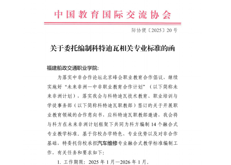此次入選是學(xué)院多年來深耕非洲開展“職教出?!比〉玫呢S碩成果,也彰顯了學(xué)院教隨產(chǎn)出,隨企出海,校企攜手“走出去”、服務(wù)“一帶一路”倡議、深化中非職業(yè)教育合作的顯著成效。未來,學(xué)院將持續(xù)拓展中非職業(yè)教育合作領(lǐng)域,厚植中非職業(yè)教育合作友誼,不斷提升對外開放和國際化發(fā)展水平。