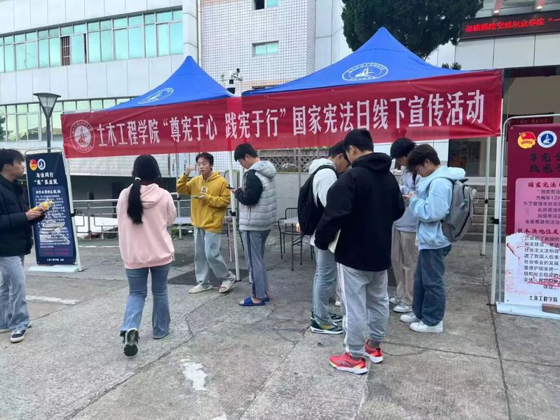 學(xué)院積極拓展宣傳教育渠道,推動(dòng)憲法學(xué)習(xí)從課堂走向生活、從文本走向?qū)嵺`。土木工程學(xué)院走進(jìn)福航園學(xué)生社區(qū),開展“尊憲于心,踐憲于行”主題宣傳活動(dòng),志愿者結(jié)合學(xué)生生活實(shí)際,系統(tǒng)解讀憲法中關(guān)于公民權(quán)利保障的核心條款,引導(dǎo)同學(xué)們理解如何運(yùn)用法律武器維護(hù)自身合法權(quán)益,樹立“尊重知識(shí)、保護(hù)創(chuàng)新”的法治觀念。此外,學(xué)院還常態(tài)化舉辦法律咨詢沙龍,為師生提供面對(duì)面的法律咨詢服務(wù),將普法教育融入日常。