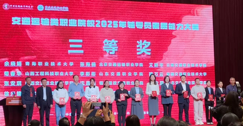 近日,全國交通運(yùn)輸類職業(yè)院校2025年輔導(dǎo)員素質(zhì)能力大賽在重慶交通職業(yè)技術(shù)學(xué)院落下帷幕。經(jīng)過兩天的激烈角逐,我院信息與智慧交通學(xué)院輔導(dǎo)員沈晨晞老師憑借扎實(shí)的基礎(chǔ)和出色的表現(xiàn),榮獲大賽三等獎。