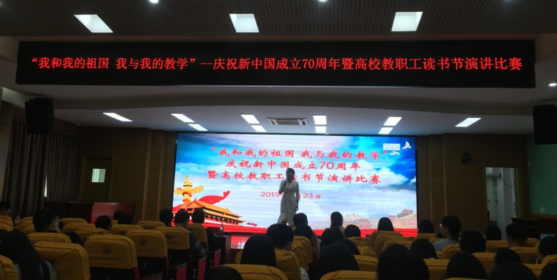 分會場設在行政樓6樓學術報告廳,舉行了“我和我的祖國 我與我的教學” 慶祝新中國成立70周年暨高校教職工讀書節(jié)演講比賽。本次演講比賽全省17所高校進入決賽,全場比賽以從踐行社會主義核心價值觀和中華民族文化自信為切入點,結合日常學科教育教學方法,準確流暢的語言表達、自然樸實的體姿,展示教師們良好的精神風貌。