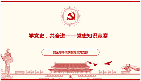 為慶祝建黨100周年,鼓勵支部黨員教師做到學(xué)史明理、學(xué)史增信、學(xué)史崇德、學(xué)史力行,學(xué)黨史、悟思想、辦實事、開新局,以昂揚姿態(tài)奮力開啟全面建設(shè)社會主義現(xiàn)代化國家新征程,3月22日,安全與環(huán)境學(xué)院第三黨支部開展了“學(xué)黨史、共奮進”黨史知識競賽。