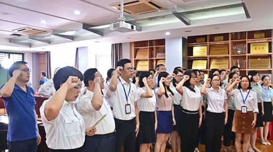 黨總支書記鄭雪琴同志作為領誓人,帶領全體黨員面向黨旗,進行莊嚴宣誓。隨后陳明仙副院長、黃端華、廖俊彥等6名黨員分享入黨初心,用樸實的語言、真摯的情感回首過去,立足當下,展望未來,在場黨員無一不深受鼓舞和感動。