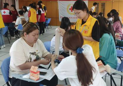 為貫徹落實(shí)習(xí)近平總書(shū)記“人民至上、生命至上”理念,大力營(yíng)造良好輿論環(huán)境,動(dòng)員更多社會(huì)力量參與和支持紅十字事業(yè),提高全校師生社會(huì)責(zé)任感和使命感,營(yíng)造健康良好的校園生活環(huán)境,6月5日—6日在科技樓安全救護(hù)實(shí)訓(xùn)室開(kāi)展心肺復(fù)蘇(CPR)、繃帶包扎、三角巾包扎、骨折固定、傷員轉(zhuǎn)運(yùn)等急救知識(shí)培訓(xùn)。