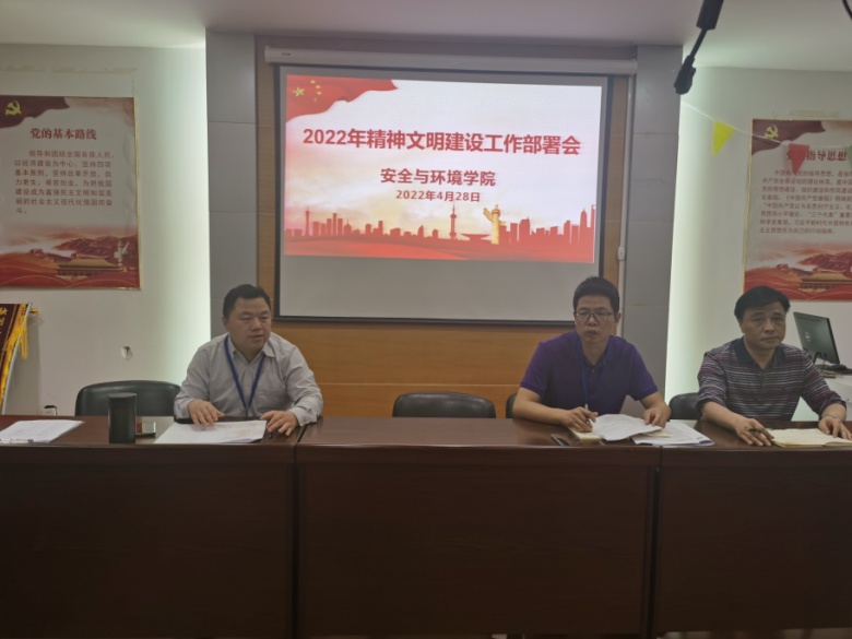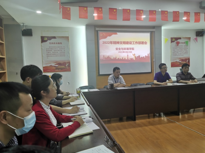 2022年4月28日下午,根據(jù)學(xué)院的部署,為學(xué)習(xí)貫徹習(xí)近平總書記關(guān)于精神文明建設(shè)工作的重要講話重要指示精神,貫徹落實(shí)中央文明委《關(guān)于深化新時(shí)代文明單位創(chuàng)建工作的意見》和省文明辦、廳文明辦工作部署,安全與環(huán)境學(xué)院召開精神文明工作部署會(huì)議。會(huì)議由安全與環(huán)境學(xué)院院長陳明仙主持,全院教職工參加了會(huì)議。