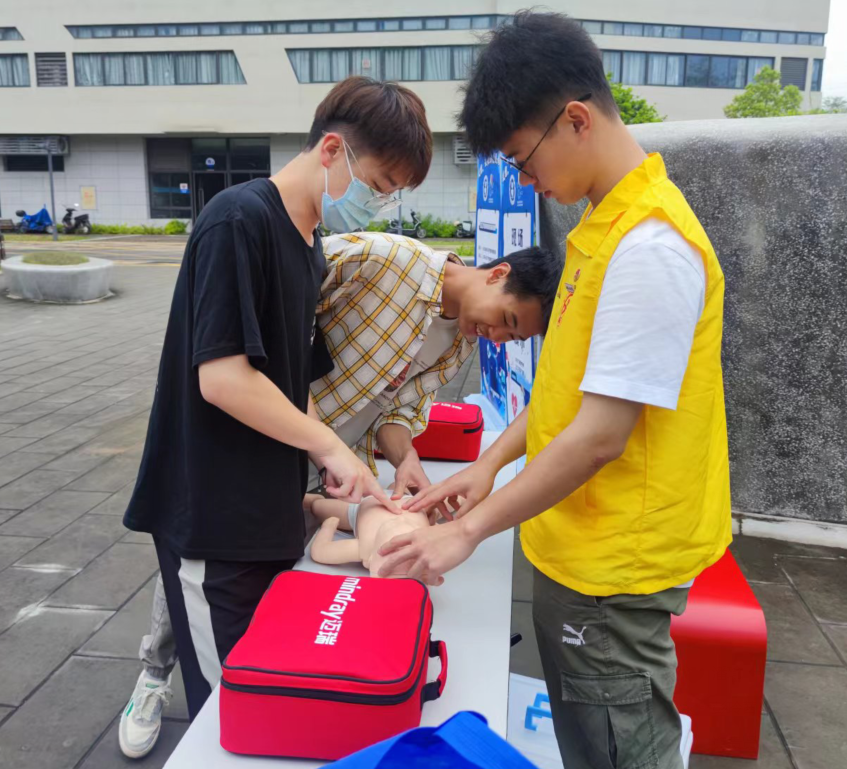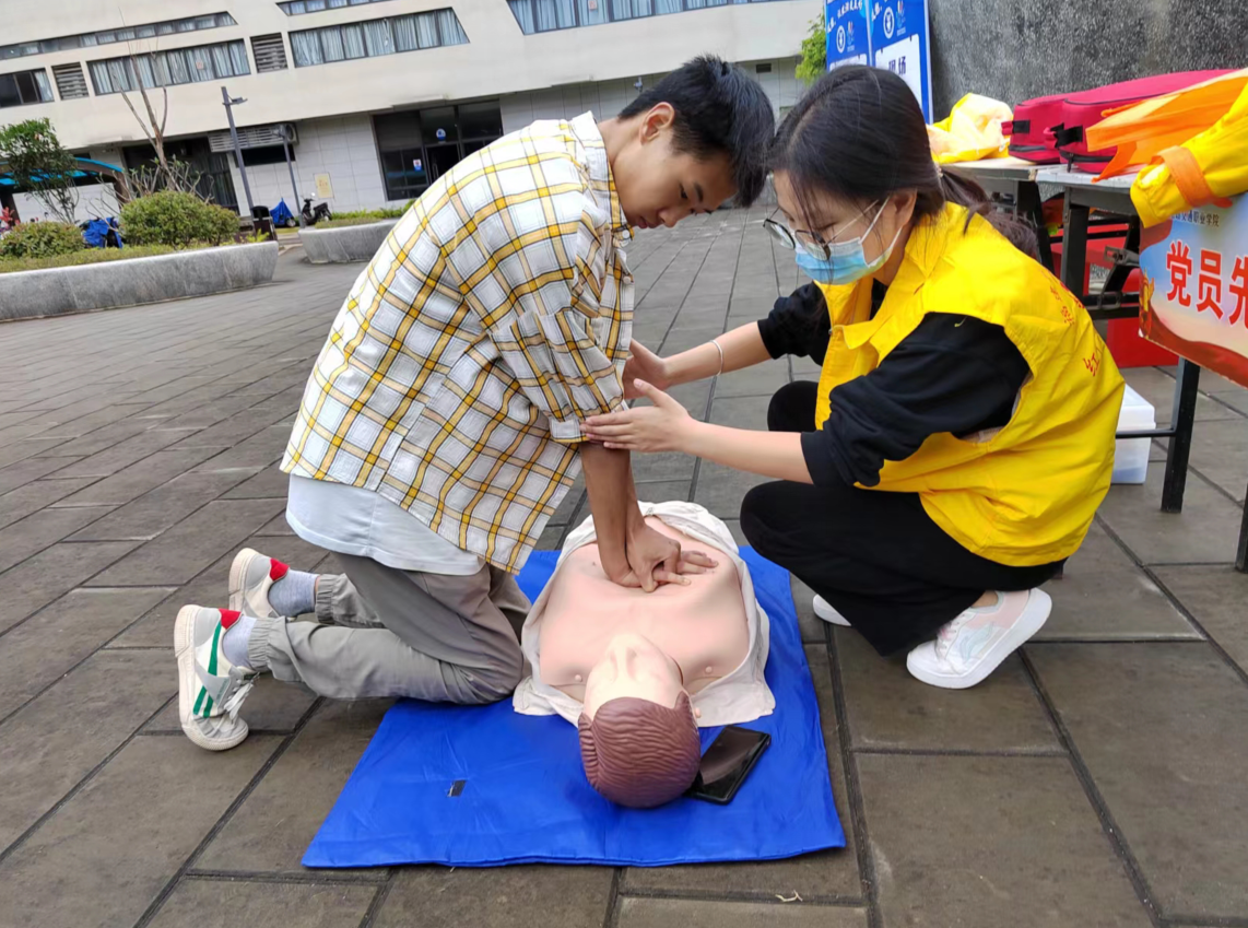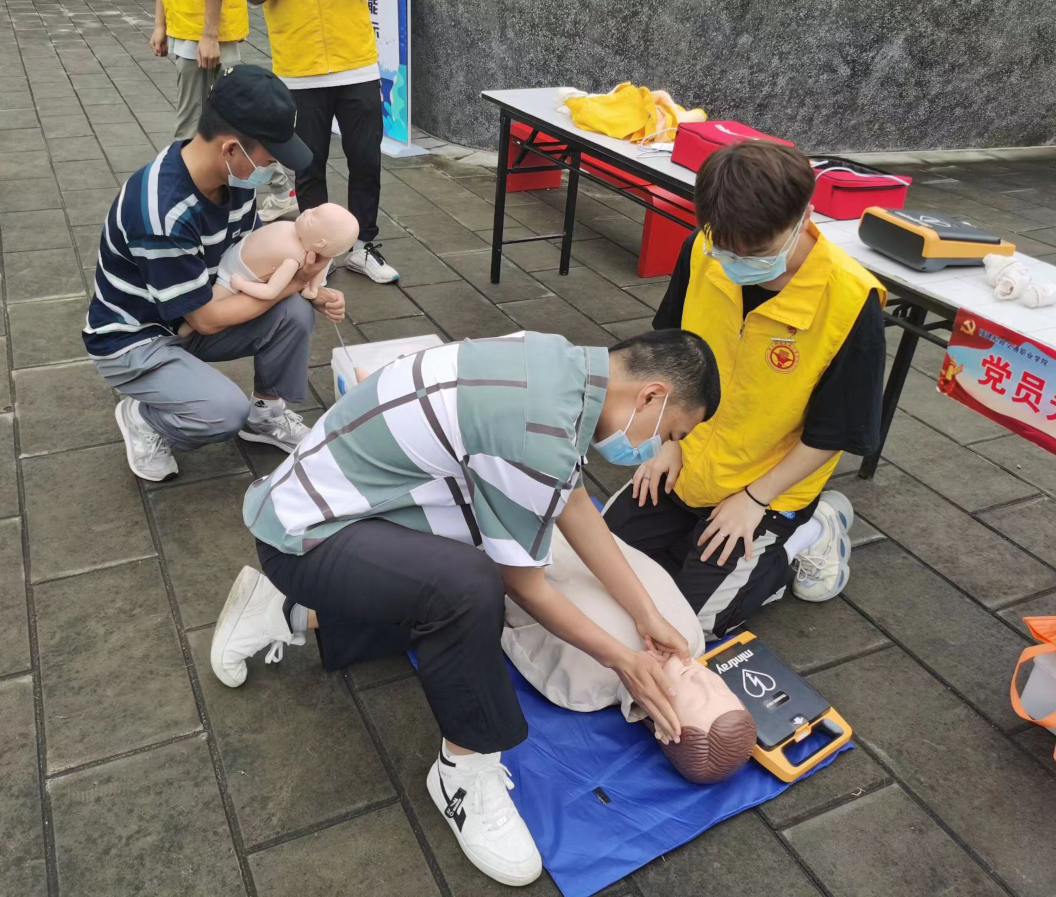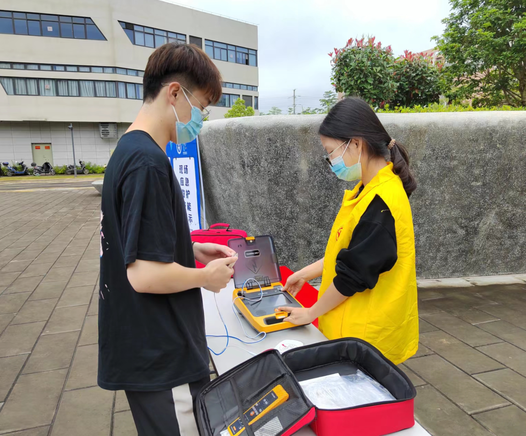 成人心肺復(fù)蘇、兒童心肺復(fù)蘇、AED除顫儀的使用、三角巾和繃帶包扎等現(xiàn)場(chǎng)應(yīng)急救護(hù)技能的展示及練習(xí)。