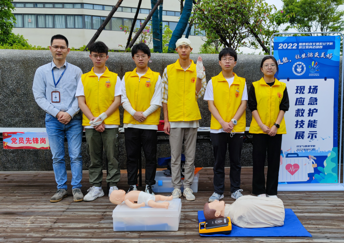 為響應(yīng)2022年職業(yè)教育活動(dòng)周主題活動(dòng),積極推廣現(xiàn)場(chǎng)應(yīng)急救護(hù)技能,安全與環(huán)境學(xué)院安全技術(shù)與管理專業(yè)在南區(qū)校門口開展了“現(xiàn)場(chǎng)應(yīng)急救護(hù)技能展示”職業(yè)技能活動(dòng)。