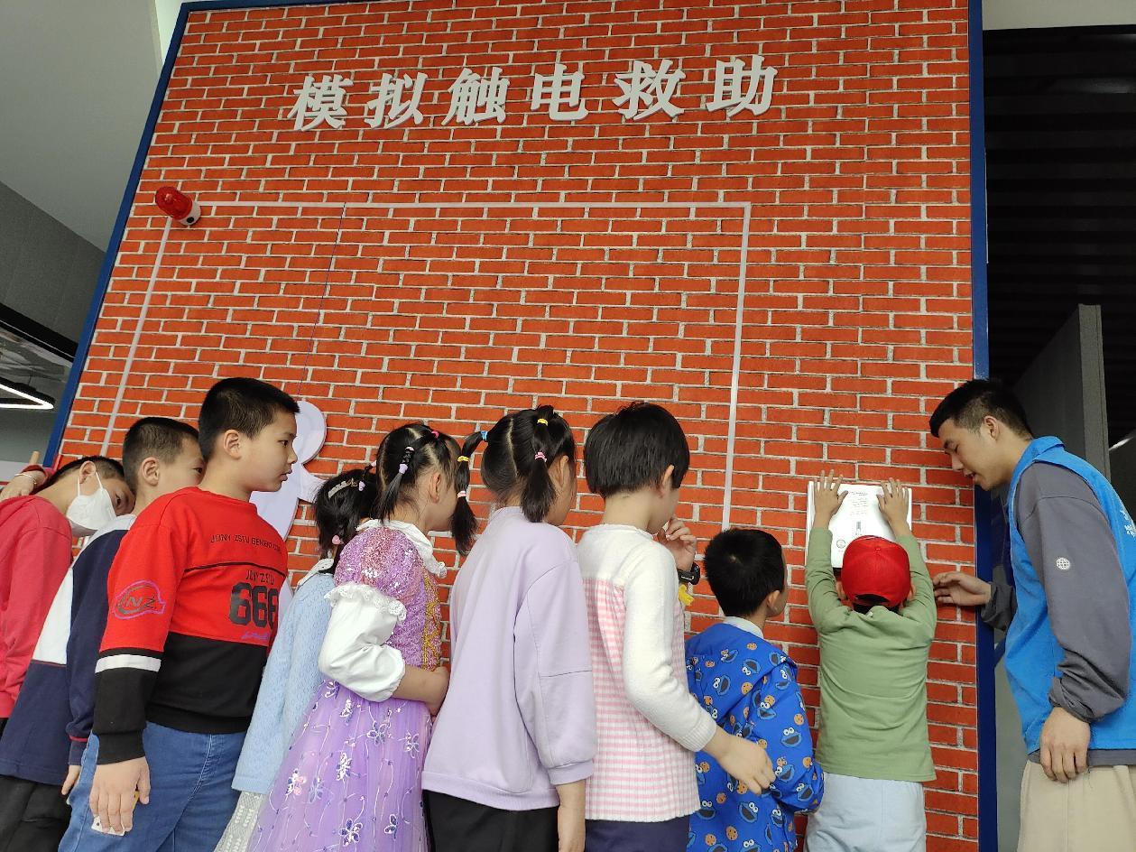 電梯墜落模擬中小朋友們按照志愿者的說明擺好防護(hù)姿勢