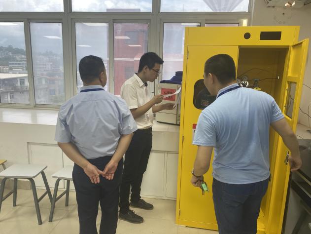 陳明仙院長重點檢查了危化品存放、氣瓶的保管使用,以及水、電、氣和儀器設備的安全使用等,并要求實訓中心要做好暑假期間的安全工作,對于安全隱患要及時發(fā)現(xiàn),及時反饋,及時整改。院長著重強調(diào),要高度重視實驗(訓)室安全工作;要進一步完善管理制度,確保暑期實驗(訓)室安全;要落實安全責任制度,做好安全保障。