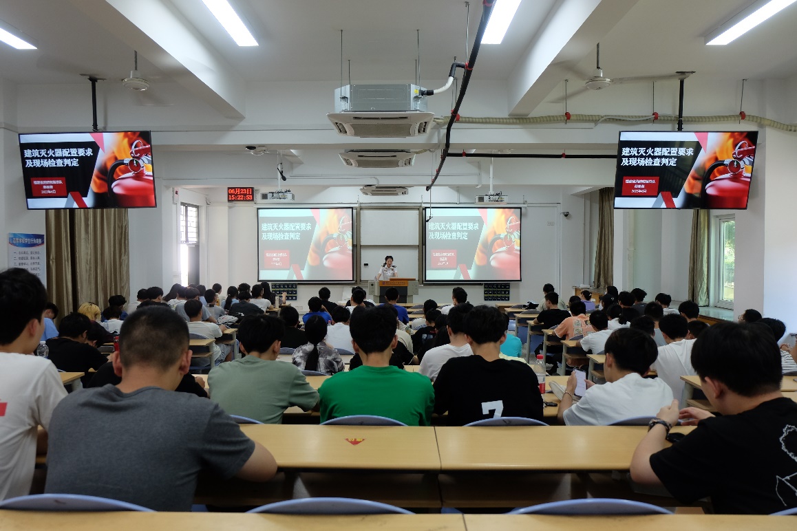 通過講座,提高了同學(xué)們對建筑滅火器配置、現(xiàn)場檢查判斷等消防安全知識和技能的掌握程度,拓展了同學(xué)們的知識面和視野,使同學(xué)們對如何預(yù)防火災(zāi)有了更深的認(rèn)識。