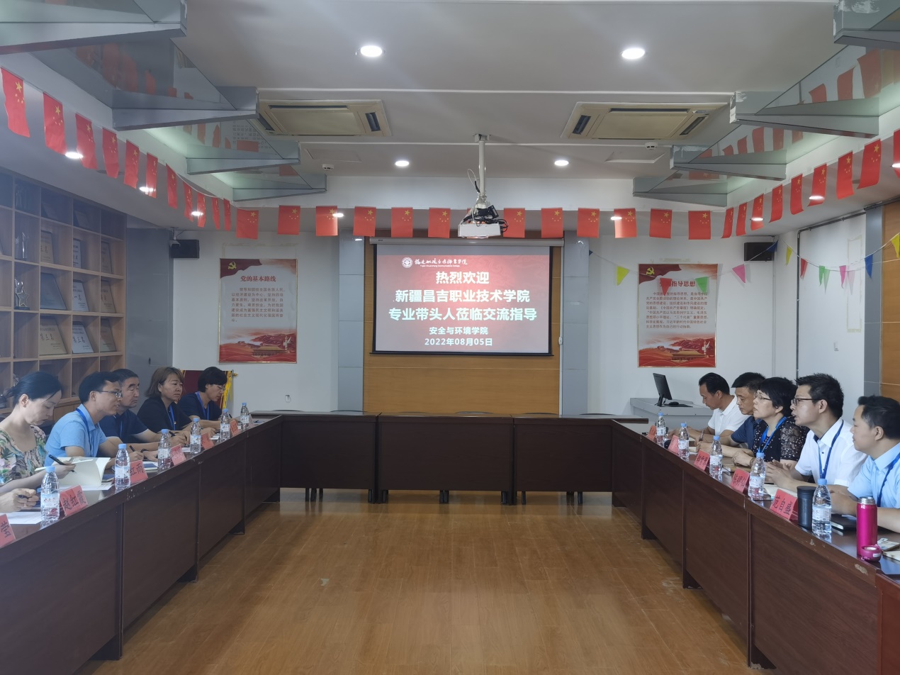 2022年8月5日,新疆昌吉職業(yè)技術(shù)學(xué)院醫(yī)學(xué)分院黨總支書記馬桂芳一行蒞臨福建船政交通職業(yè)學(xué)院安全與環(huán)境學(xué)院交流指導(dǎo)。安全與環(huán)境學(xué)院總支書記鄭雪琴、學(xué)院院長陳明仙、副院長陳榕、副院長范自盛、以及教研室主任、骨干教師等參加會議。座談會上陳明仙院長對馬桂芳書記一行的到來表示熱烈歡迎,介紹了我院基本情況。雙方就雙高建設(shè)、專業(yè)建設(shè)、黨建工作和學(xué)生管理等進行了交流。會后,陳榕副院長陪同馬桂芳書記一行參觀了公共安全產(chǎn)教融合實訓(xùn)基地、智慧安全工地實訓(xùn)室、應(yīng)急救援訓(xùn)練中心等教學(xué)實訓(xùn)場所。