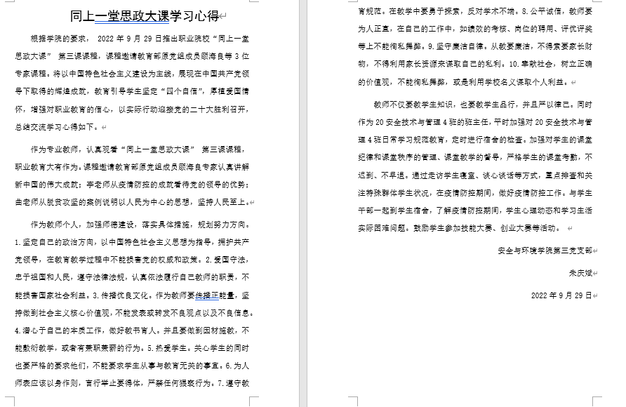 安全與環(huán)境學(xué)院全體師生通過(guò)此次的觀看學(xué)習(xí),對(duì)習(xí)近平新時(shí)代中國(guó)特色社會(huì)主義思想有了深層次的認(rèn)識(shí)和領(lǐng)會(huì),對(duì)“兩個(gè)確立”的決定性意義有了更深刻感悟。大家紛紛表示今后將堅(jiān)持以習(xí)近平新時(shí)代中國(guó)特色社會(huì)主義思想為指導(dǎo),以“同上一堂思政大課”建設(shè)為牽引,堅(jiān)持自信自強(qiáng)、守正創(chuàng)新,全面推進(jìn)思政課高質(zhì)量發(fā)展,以實(shí)際行動(dòng)迎接黨的二十大勝利召開(kāi)。