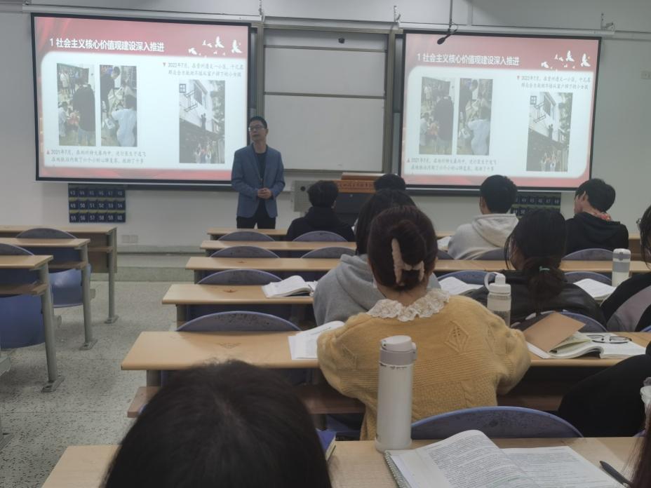 為更好貫徹落實(shí)中辦、國(guó)辦《關(guān)于深化新時(shí)代學(xué)校思想政治理論課改革創(chuàng)新的若干意見(jiàn)》,中組部、中宣部、教育部《關(guān)于領(lǐng)導(dǎo)干部上講臺(tái)開(kāi)展思想政治教育的意見(jiàn)》及省委教育工作領(lǐng)導(dǎo)小組《關(guān)于深化新時(shí)代學(xué)校思想政治理論課改革創(chuàng)新行動(dòng)方案》,安全與環(huán)境學(xué)院院長(zhǎng)陳明仙參與思政教研室的集體備課,于2022年12月8日,給安全與環(huán)境學(xué)院學(xué)生講授思政課、講授以“偉大時(shí)代的歷史跨越”為主題的形勢(shì)與政策課。