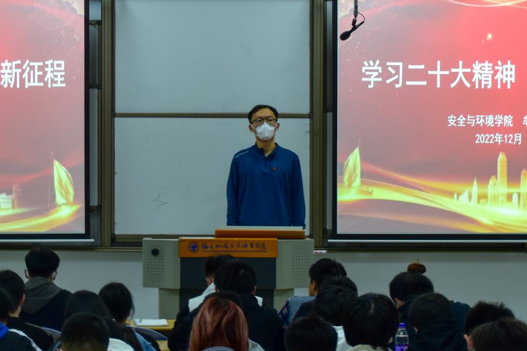 為學深學透黨的二十大精神,不斷增強支部黨員、入黨積極分子的政治意識、大局意識、核心意識、看齊意識,自覺貫徹黨章各項規(guī)定要求,嚴明黨的政治紀律和政治規(guī)矩,12月12日,安全與環(huán)境學院第一黨支部組織支部黨員、入黨積極分子在創(chuàng)新樓202開展學習貫徹黨的二十大精神專題黨課,支部書記牟鵬飛同志以《中共二十大黨章的30個重要修改》為題進行授課,帶領(lǐng)大家深入學習新黨章。