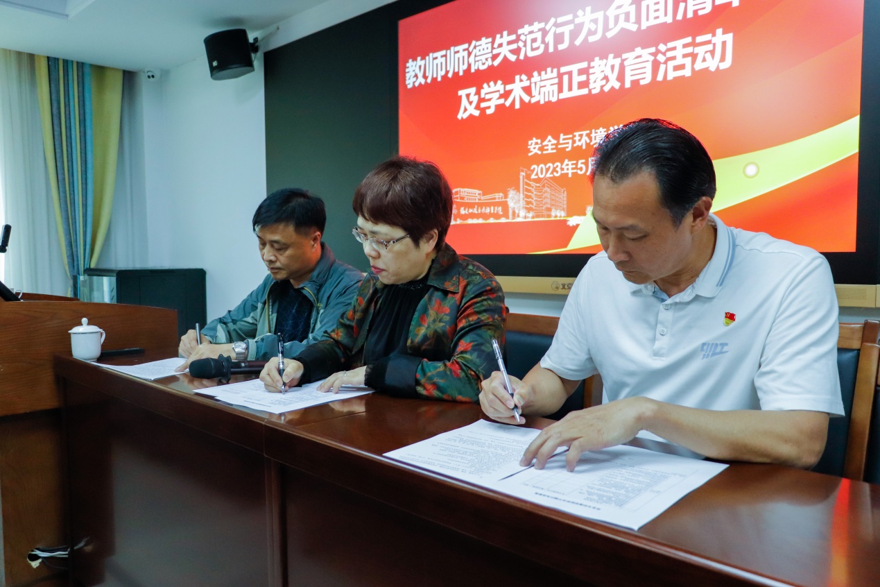 最后,教師們簽署了《教師師德失范行為負(fù)面清單承諾書》、《教師學(xué)術(shù)不端自查表》。