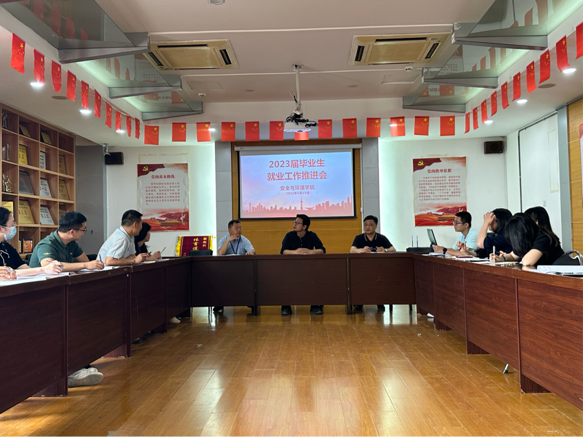 為切實(shí)做好2023屆畢業(yè)生就業(yè)創(chuàng)業(yè)工作, 5月15日下午,安全與環(huán)境學(xué)院學(xué)院在909會議室召開就業(yè)工作推進(jìn)會議。會議由學(xué)院院長陳明仙主持,副院長范自盛、副院長陳榕、各教研室主任、全體輔導(dǎo)員參會。
