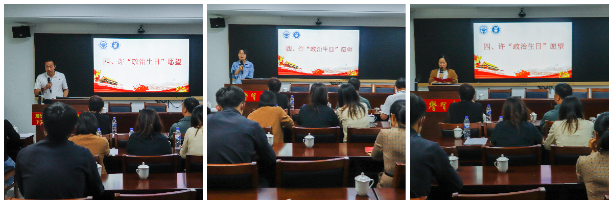 在合唱《沒(méi)有共產(chǎn)黨就沒(méi)有新中國(guó)》的歌聲中,全體黨員許下自己的“政治生日”愿望。黨總支書(shū)記鄭雪琴同志為全體黨員送上“政治生日”寄語(yǔ),要求黨員教師要不忘教育初心,牢記育人使命,以過(guò)政治生日為契機(jī),升華身份意識(shí)、宗旨意識(shí)、擔(dān)當(dāng)意識(shí),直面時(shí)代的教育命題,貫徹落實(shí)立德樹(shù)人根本任務(wù),助推“雙高校”建設(shè)。
