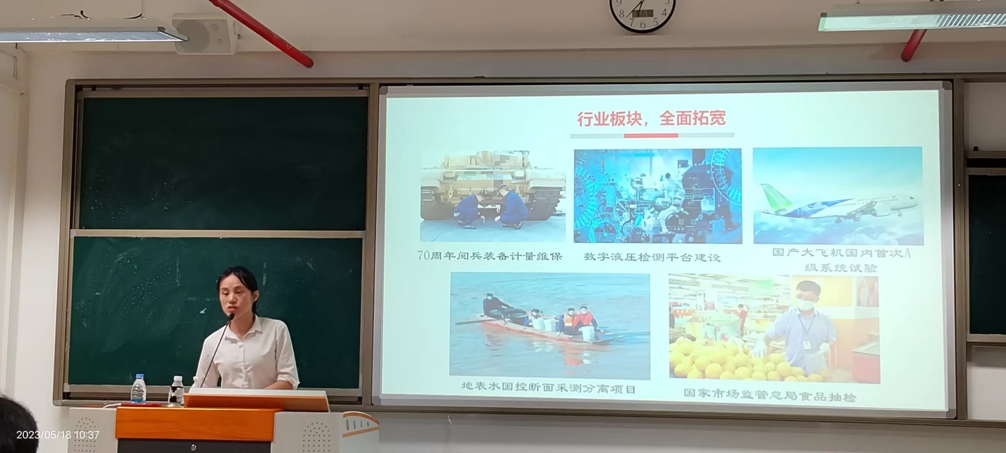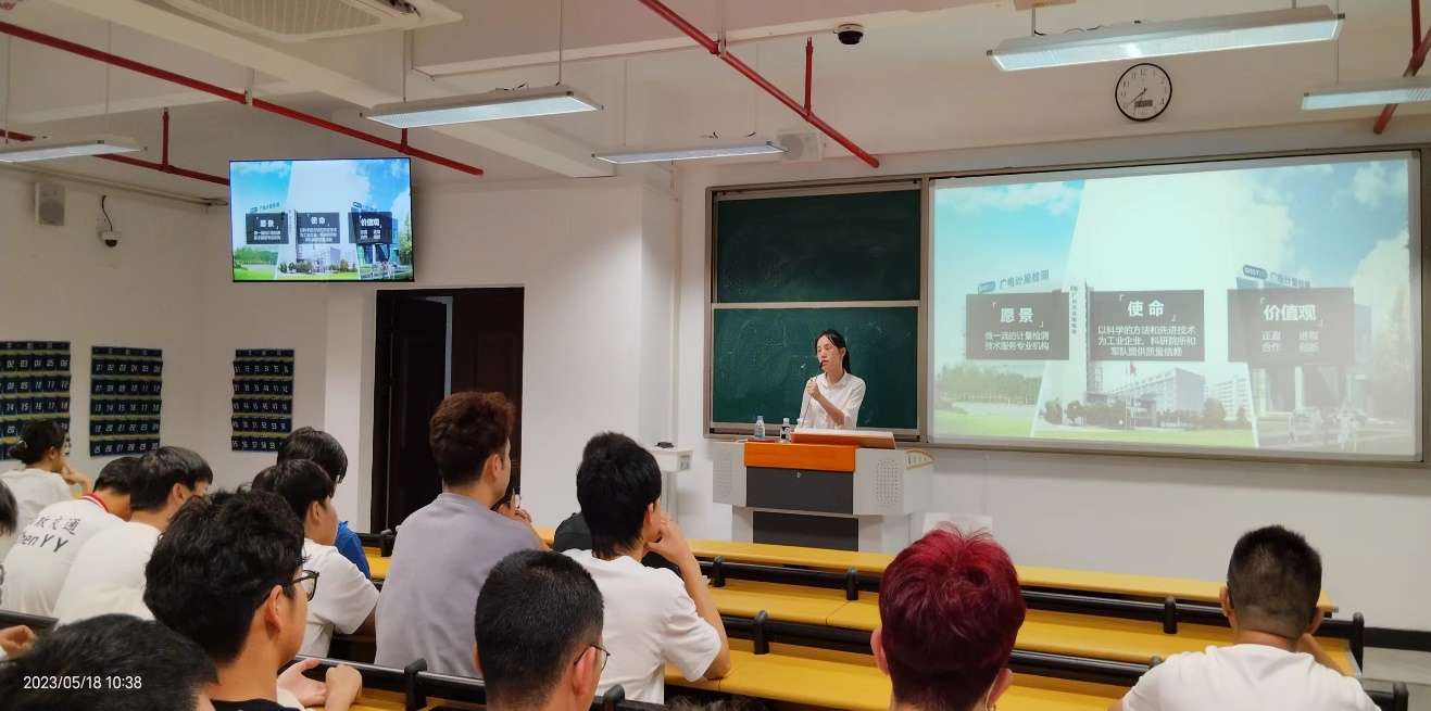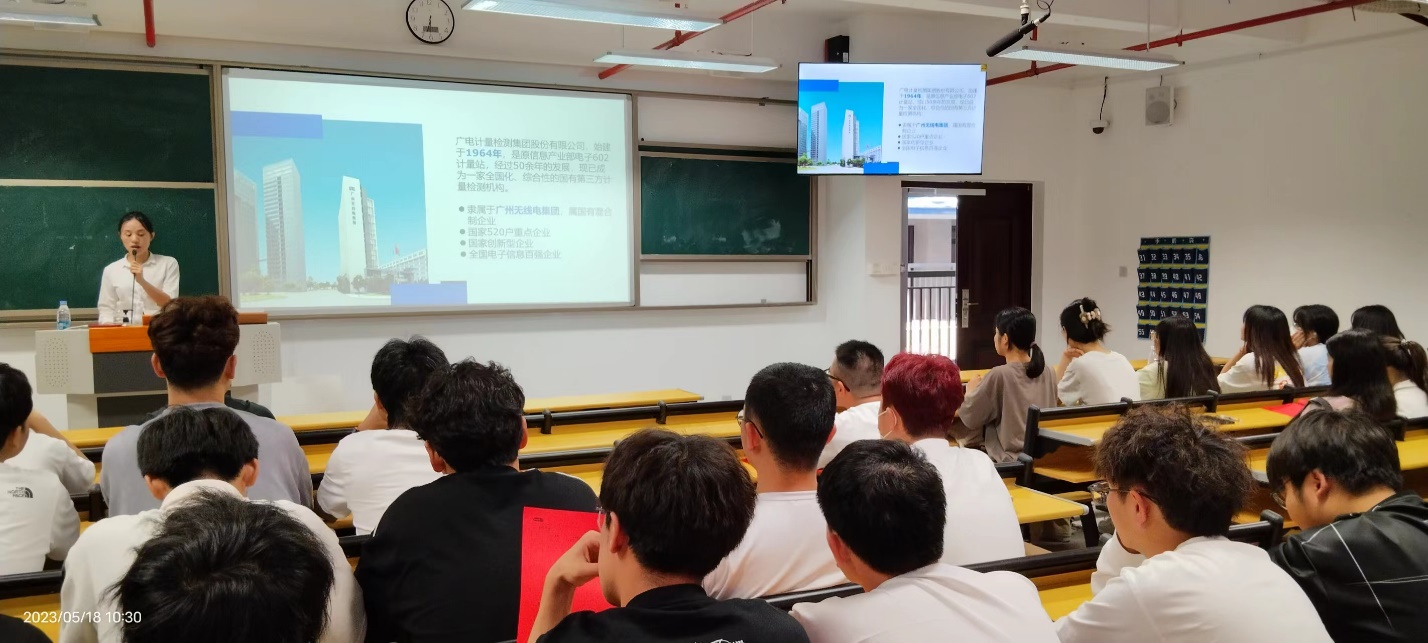 會上,康水蘭對廣電計量檢測股份有限公司進行了詳細的介紹,從愿景、使命和價值觀三個角度介紹了公司的人文氛圍和選拔機制,并播放了公司前輩錄制的視頻,分享前輩們從大學畢業(yè)所面臨的困惑和困難,堅持不懈接近目標以及最終達到目標的成長經(jīng)歷。這些視頻中所傳遞出來的正能量給現(xiàn)場即將畢業(yè)的同學們加油鼓勁。最后康水蘭還帶來此次宣講的特別福利,公布了公司新一輪的人才需求,為我院環(huán)境工程技術專業(yè)學生提供了較大體量的崗位。