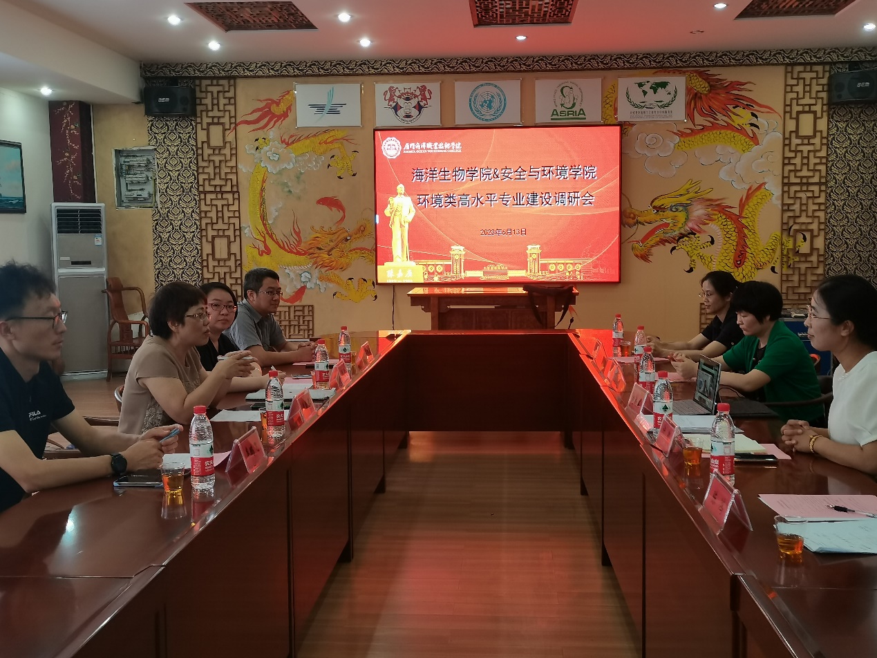 為扎實(shí)推動學(xué)習(xí)貫徹習(xí)近平新時(shí)代中國特色社會主義思想主題教育走深走實(shí),6月13日,福建船政交通職業(yè)學(xué)院安全與環(huán)境學(xué)院赴廈門海洋職業(yè)技術(shù)學(xué)院海洋生物學(xué)院開展環(huán)境類高水平專業(yè)建設(shè)調(diào)研會。安全與環(huán)境學(xué)院黨總支書記鄭雪琴教授、環(huán)境工程技術(shù)專業(yè)教研室主任廖俊彥、黨總支紀(jì)檢委員陳敏、第一支部書記牟鵬飛一行與海洋生物學(xué)院黨總支副書記趙梅英(主持工作)、副院長許敏、食品與藥品教研室教研室主任林嬌芬、環(huán)境管理與評價(jià)專業(yè)負(fù)責(zé)人林麗茹、組織員陳鴻共同調(diào)研交流。
