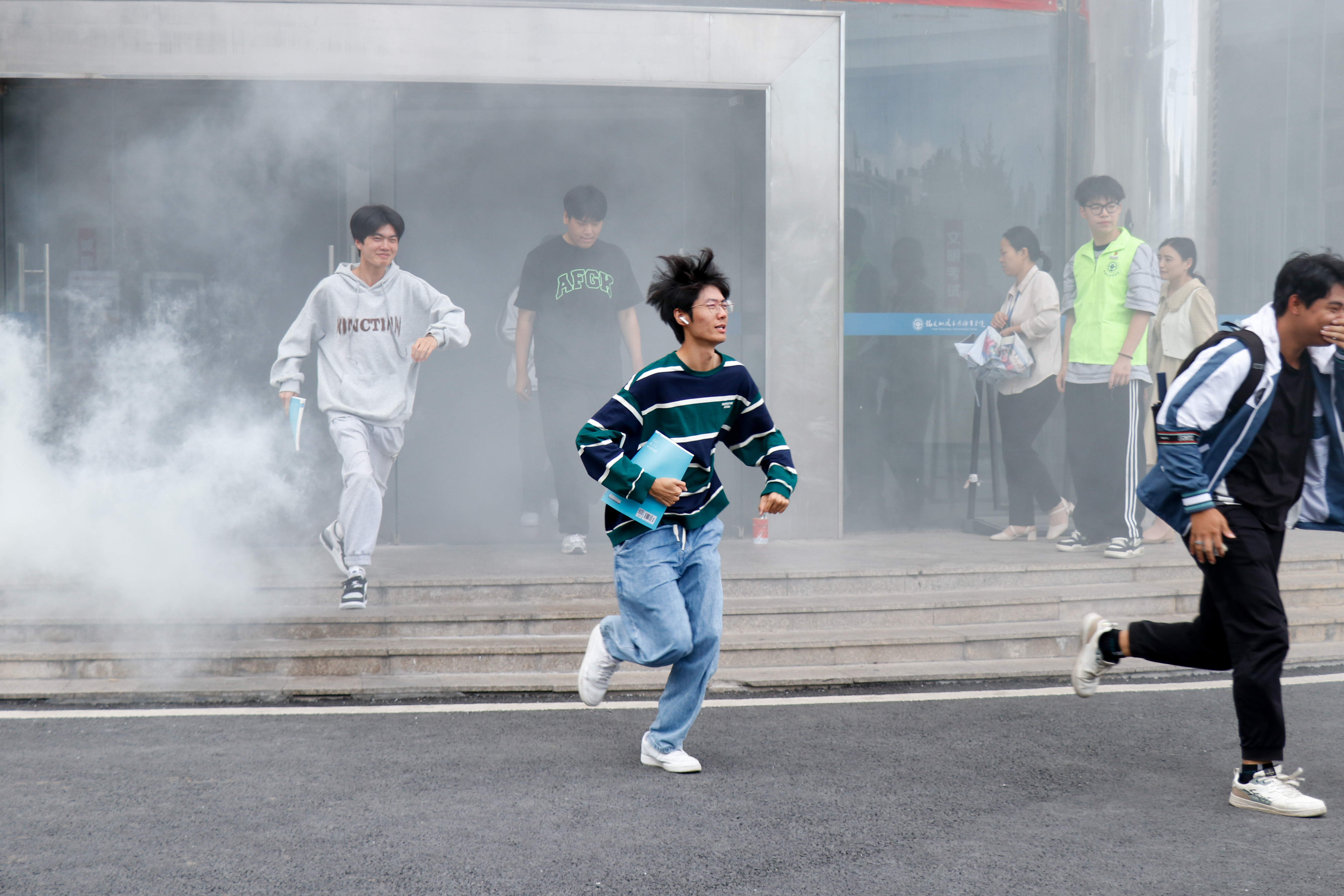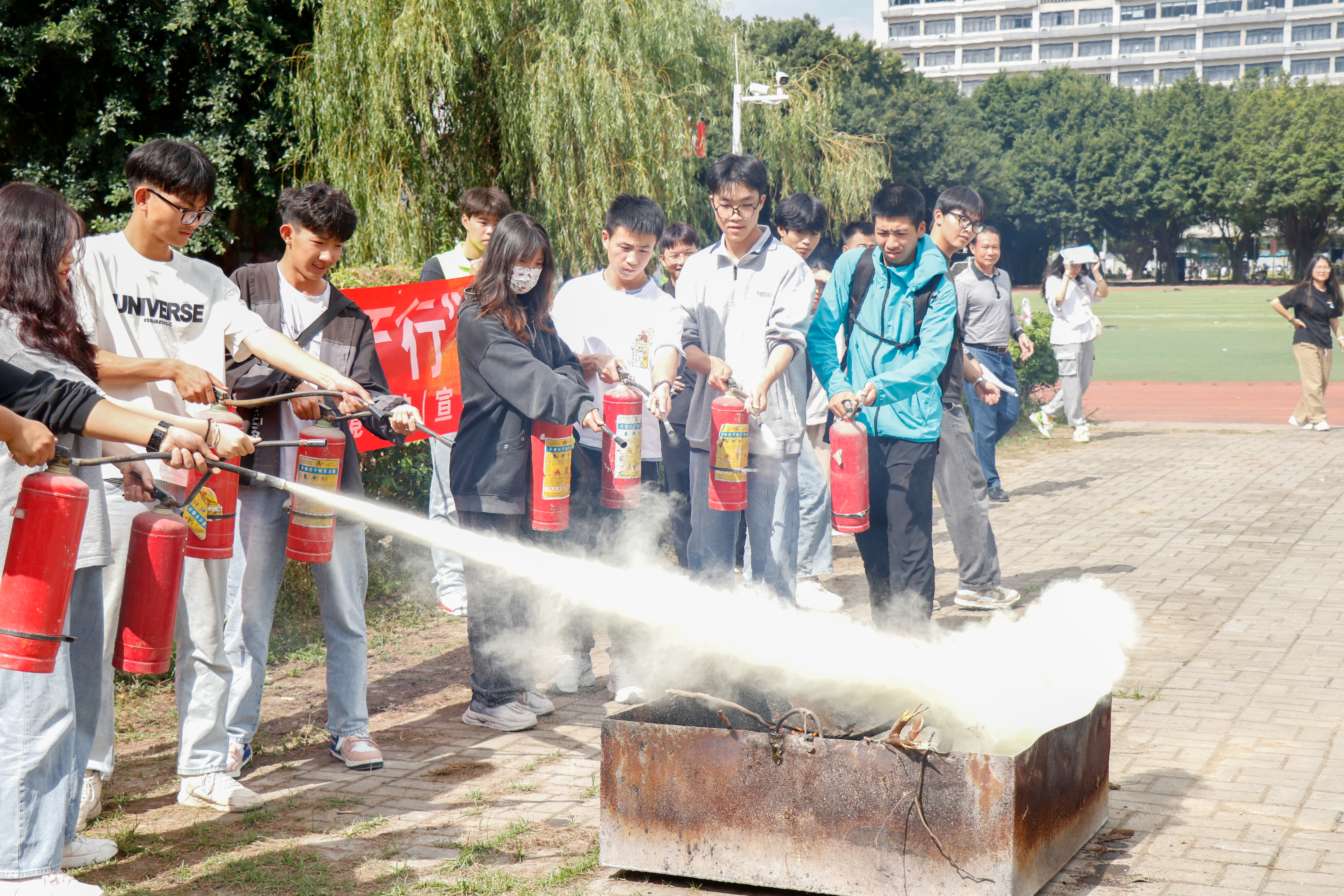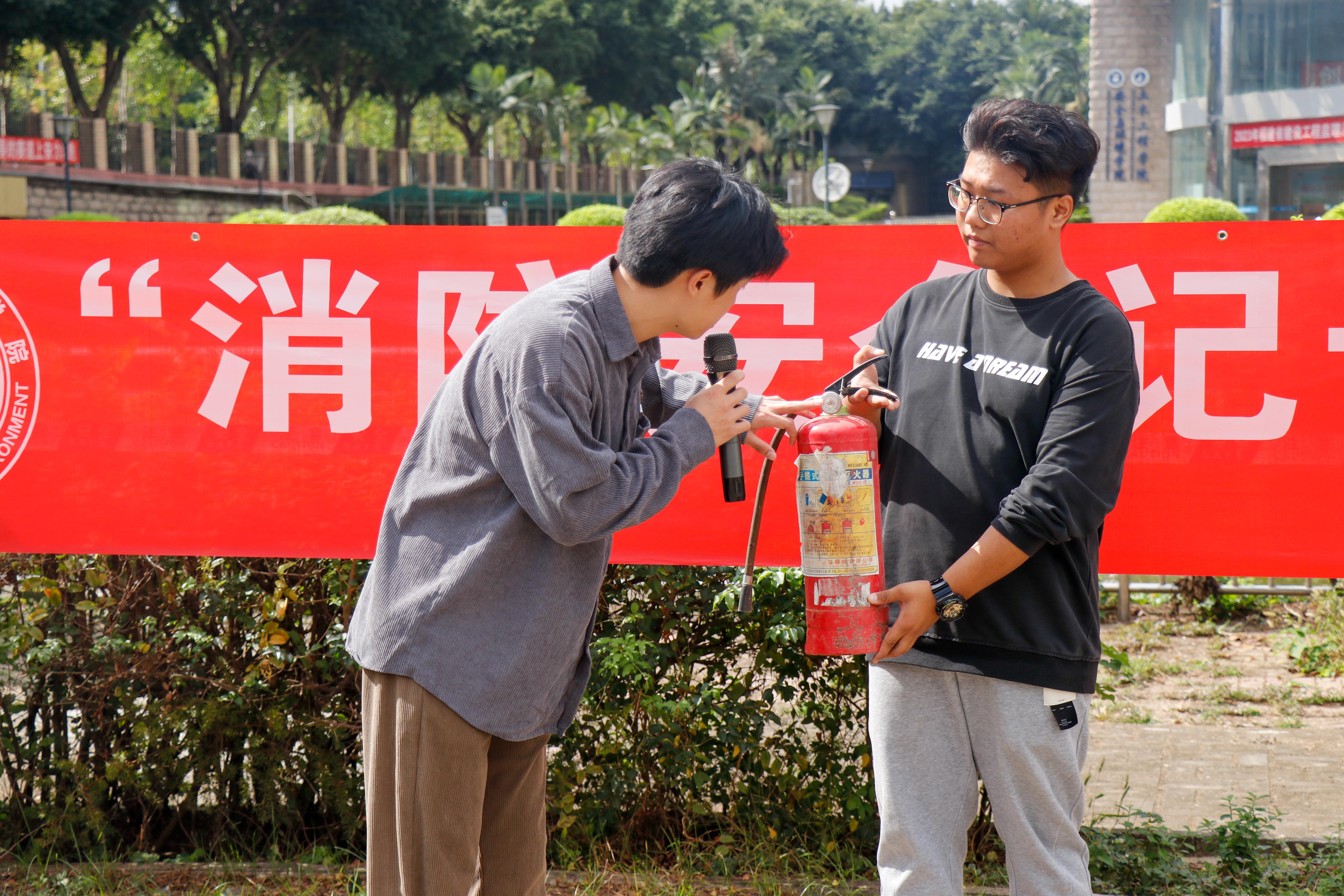 在演練開始前,工作人員為同學(xué)們講解了消防安全基礎(chǔ)知識及安全逃生路線,讓大家充分認(rèn)識到火災(zāi)的危險(xiǎn)性。警笛響徹云霄,煙霧彈噴出一股股濃煙,同學(xué)們一個(gè)個(gè)保持冷靜,捂住口鼻,彎腰低姿,按照指定路線有序地進(jìn)行疏散,快速安全地抵達(dá)了操場。緊接著,朱秋明同學(xué)向大家講解滅火器的正確使用方法,隨后讓同學(xué)們分批進(jìn)行滅火器的使用體驗(yàn)。最后,陳火城老師為同學(xué)們普及了宿舍的消防常識、用電的安全注意事項(xiàng)等內(nèi)容,徐林悅慰老師對本次逃生演練進(jìn)行了總結(jié),并提醒同學(xué)們要不斷增強(qiáng)安全意識,正確掌握在危險(xiǎn)中迅速逃生、自救、互救的基本方法。