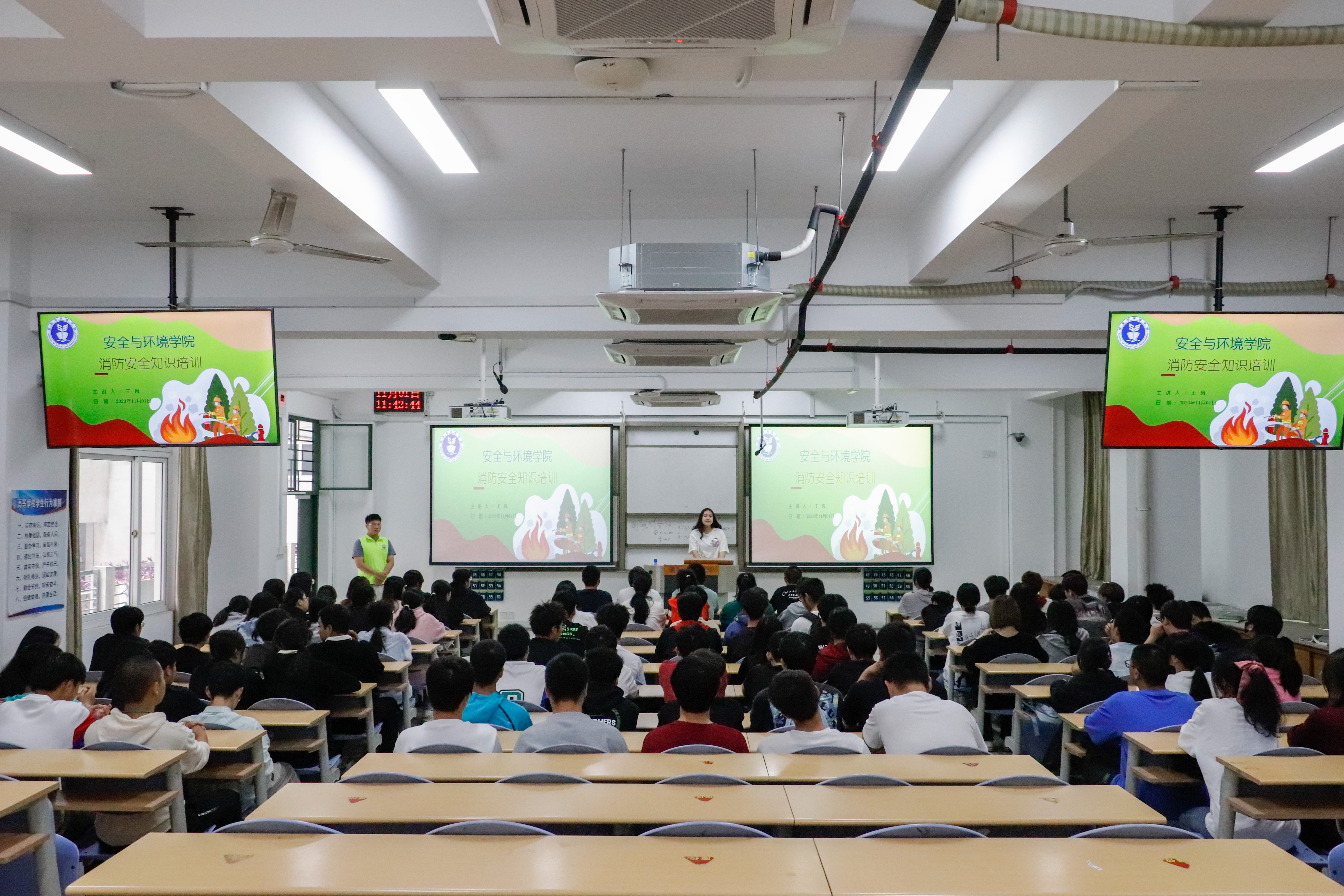 為幫助同學(xué)們了解消防安全知識,提高同學(xué)們對火災(zāi)的預(yù)防和處理能力,貫徹落實(shí)公安部關(guān)于堅(jiān)決遏制重特大火災(zāi)事故的重要指示精神,安全與環(huán)境學(xué)院于2023年11月1日上午開展了“消防安全記于心,防范未燃踐于行”消防演練主題活動(dòng)。安全與環(huán)境學(xué)院副處級組織委員陳火城老師、團(tuán)委副書記徐林悅慰,以及2023級全體同學(xué)參加了此次活動(dòng)。