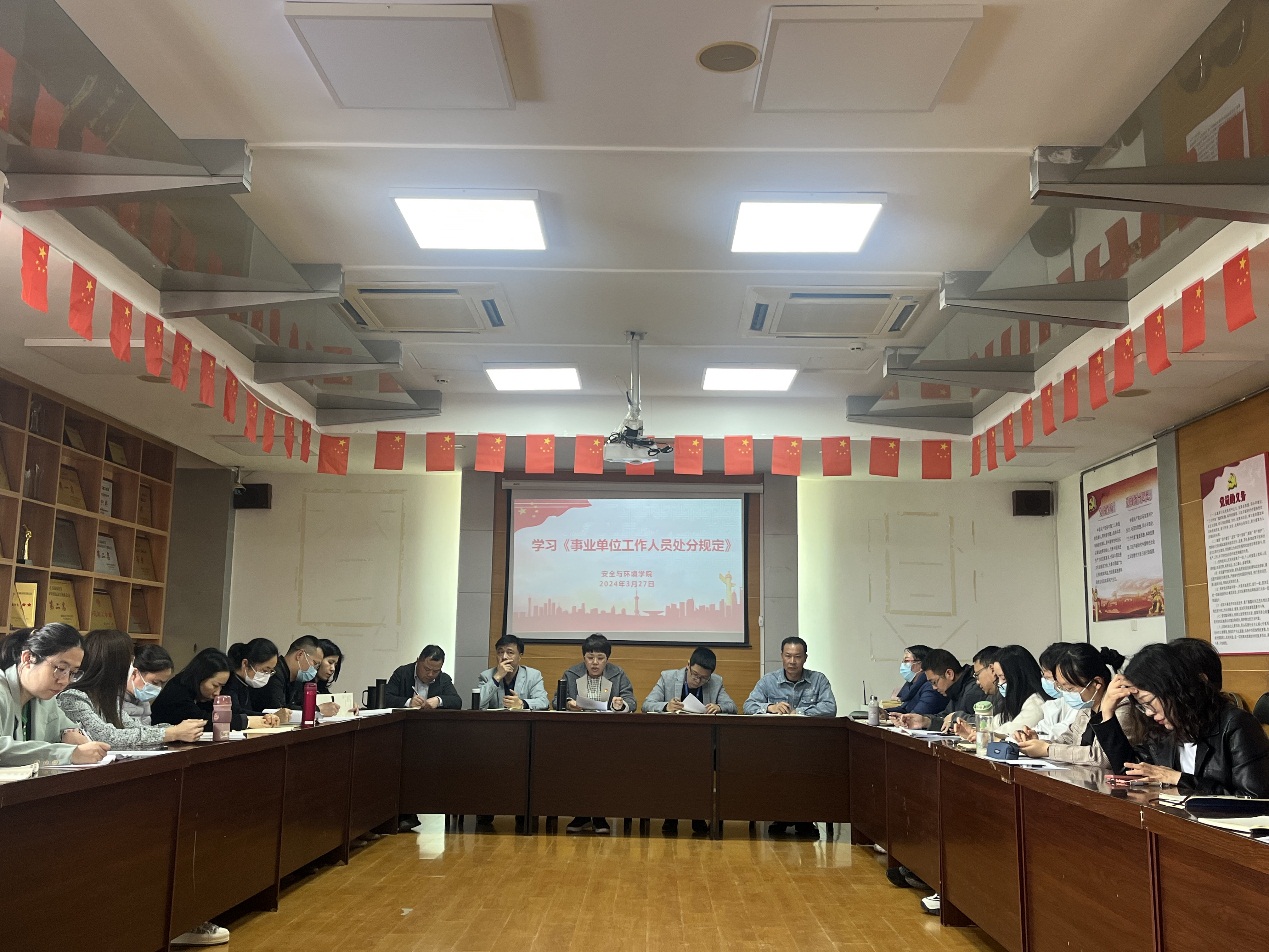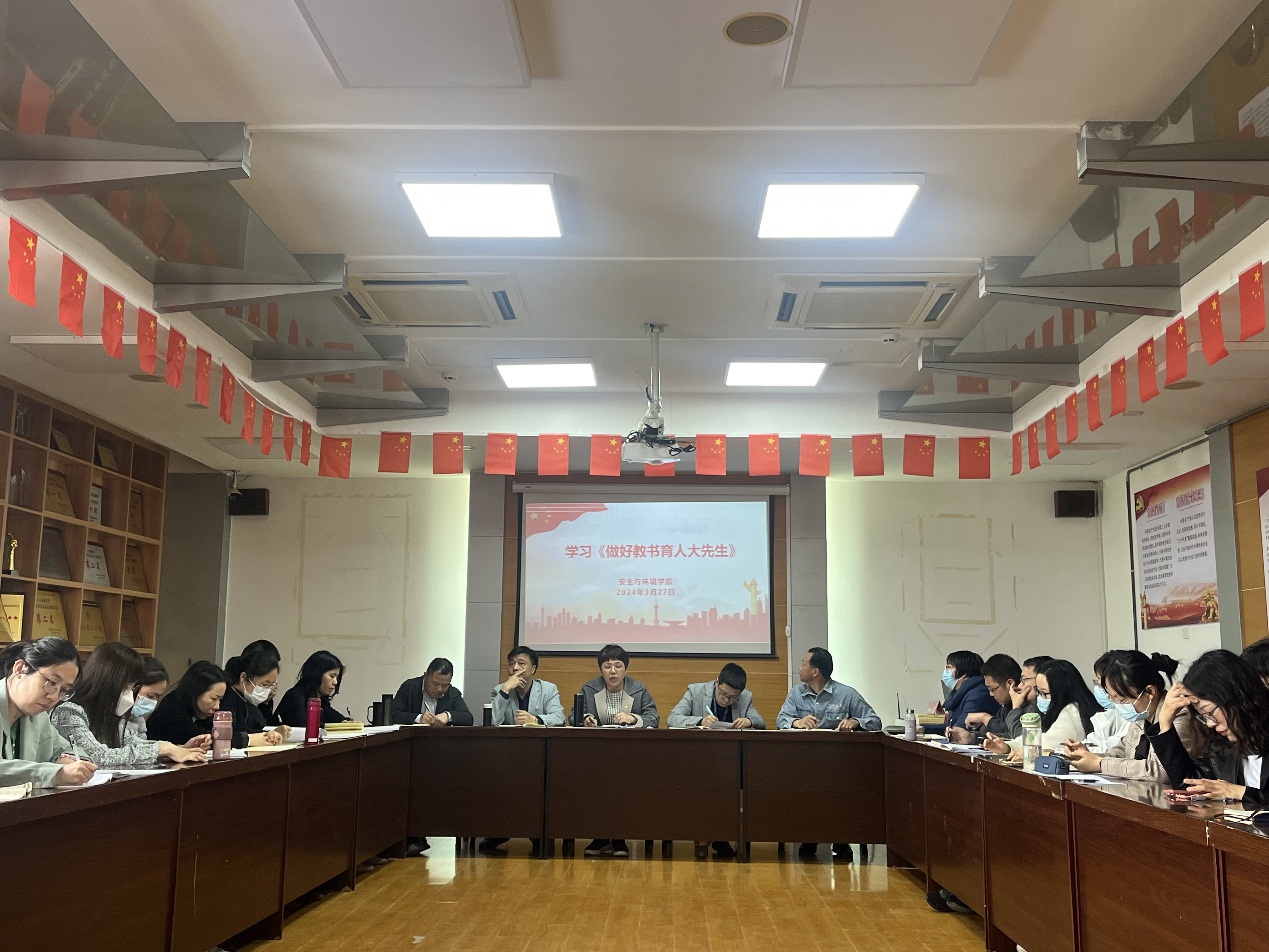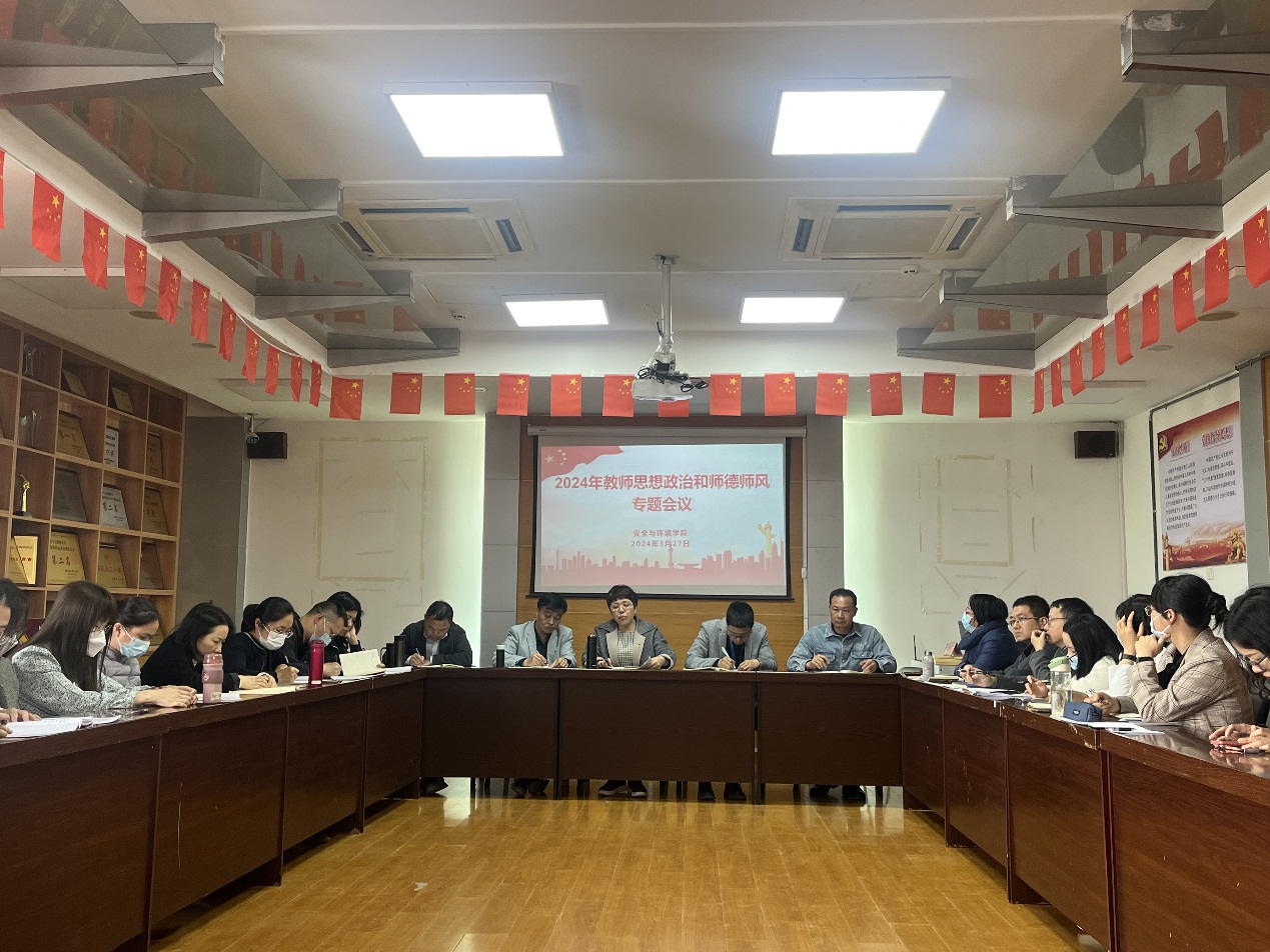 為鞏固拓展學(xué)習(xí)貫徹習(xí)近平新時(shí)代中國(guó)特色社會(huì)主義思想主題教育成果,認(rèn)真學(xué)習(xí)貫徹習(xí)近平總書記關(guān)于教育的重要論述和指示批示精神,進(jìn)一步加強(qiáng)教師思想政治教育和師德師風(fēng)建設(shè)工作,落實(shí)立德樹(shù)人根本任務(wù),引導(dǎo)教師堅(jiān)守教育初心,踐行育人使命,規(guī)范從教行為,2024年3月27日下午,安全與環(huán)境學(xué)院在創(chuàng)新樓909會(huì)議室召開(kāi)2024年教師思想政治和師德師風(fēng)專題會(huì)議,學(xué)院全體教職工參加。