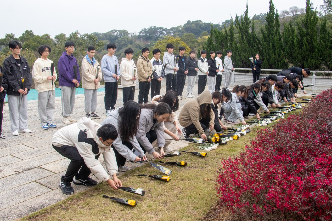 時間的長河流淌不息,卻沖不淡我們對先烈的緬懷。同學(xué)們懷著崇敬之情,走進烈士紀(jì)念園舉行莊嚴(yán)肅穆的祭奠儀式。同學(xué)們依次為革命烈士獻花,在紀(jì)念碑前默哀、鞠躬,向英雄前輩們致以最崇高的敬意,以此表達我們對于守護家園的革命烈士深切的緬懷和哀思。