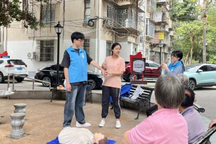 安全與環(huán)境學(xué)院林瀅老師為居民們進(jìn)行包扎示范,同時(shí)積極解答居民的疑惑,提醒他們多多關(guān)注“防災(zāi)減災(zāi)”小知識(shí),學(xué)會(huì)保護(hù)自己,使社區(qū)居民對(duì)急救知識(shí)有了更深入的了解。