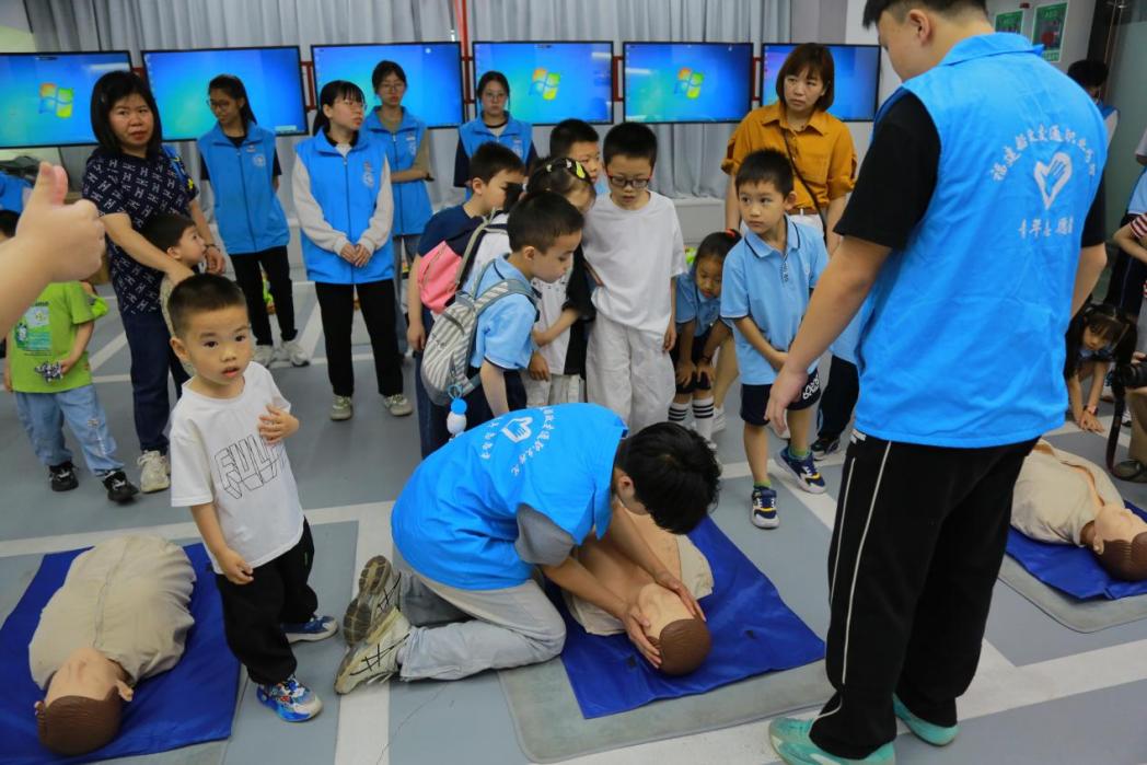 參觀體驗的最后環(huán)節(jié),在最具特色的安全救護區(qū)學(xué)習(xí)心肺復(fù)蘇知識,雖然小朋友們年級都還小,不具備做心肺復(fù)蘇救人的能力,但是通過我們的講授,相信會在他們心目中播下一顆安全的種子,助力他們健康快樂成長。