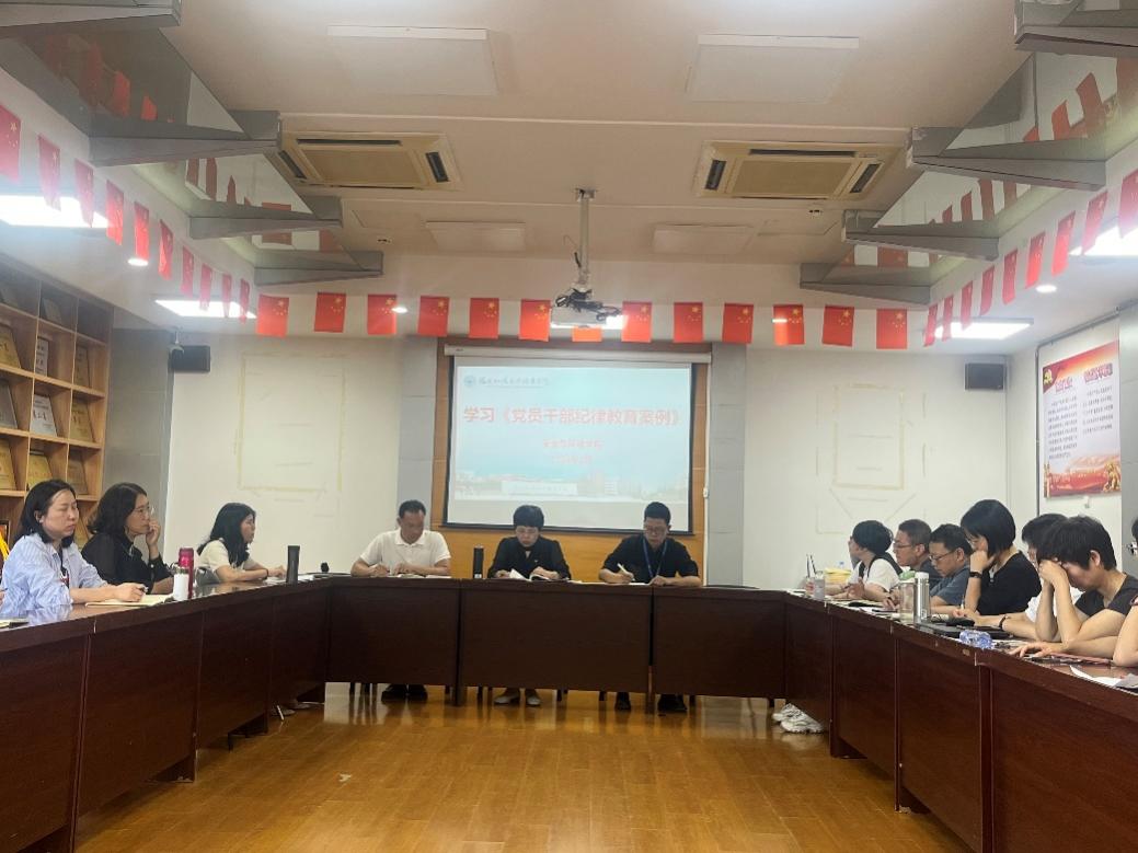 首先,鄭雪琴書記領學了《中國共產黨加強紀律建設的經驗啟示》,分享了《黨員干部紀律教育案例》中“在國(境)外擅自變更路線”和“以講課名義變相送禮”兩個篇章,用生動的案例剖析了違紀行為的危害性和嚴重性。