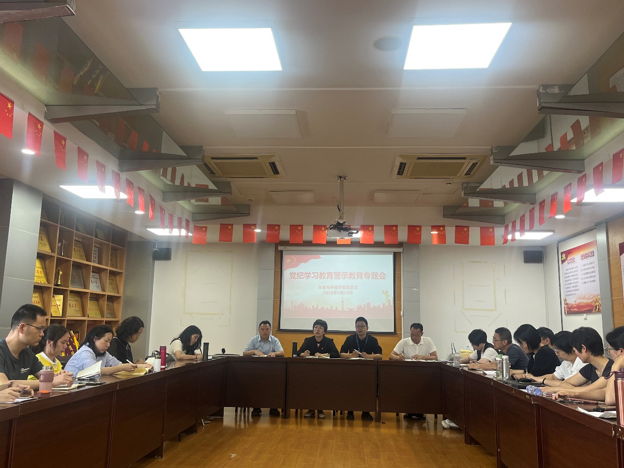 5月29日下午,安全與環(huán)境學院在創(chuàng)新樓909召開黨紀學習教育警示專題會。會議由黨總支書記鄭雪琴同志主持,學院全體教師參加。