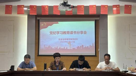 2024年6月12日,我院在創(chuàng)新樓909會議室舉辦黨紀(jì)學(xué)習(xí)教育讀書分享會,安全與環(huán)境學(xué)院全體教職工黨員參加。