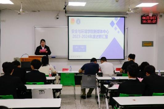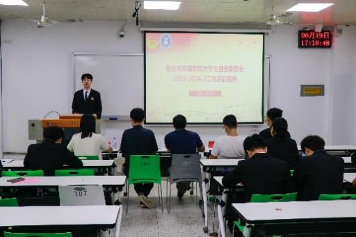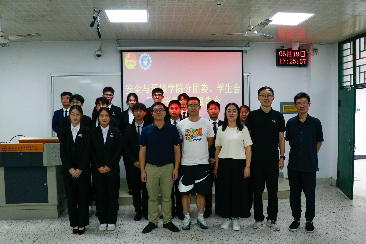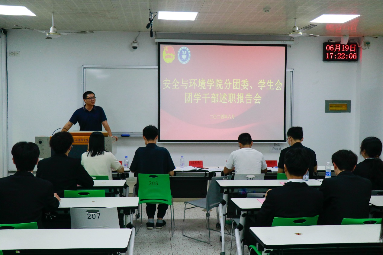 為進(jìn)一步落實(shí)共《關(guān)于推動(dòng)高校學(xué)生會(huì)深化改革的若干意見(jiàn)》、《深化學(xué)校共青團(tuán)改革的若干措施》等文件精神,推動(dòng)學(xué)院學(xué)生干部隊(duì)伍的建設(shè),6月19日下午,2023-2024學(xué)年安全與環(huán)境學(xué)院學(xué)生部門(mén)述職大會(huì)于創(chuàng)新樓208教室召開(kāi)。學(xué)院團(tuán)委書(shū)記彭志允、團(tuán)委副書(shū)記徐林悅慰、團(tuán)委組織委員張曉珊、學(xué)院第一黨支部書(shū)記何瀚深、輔導(dǎo)員牟鵬飛蒞臨參加本次述職大會(huì)。